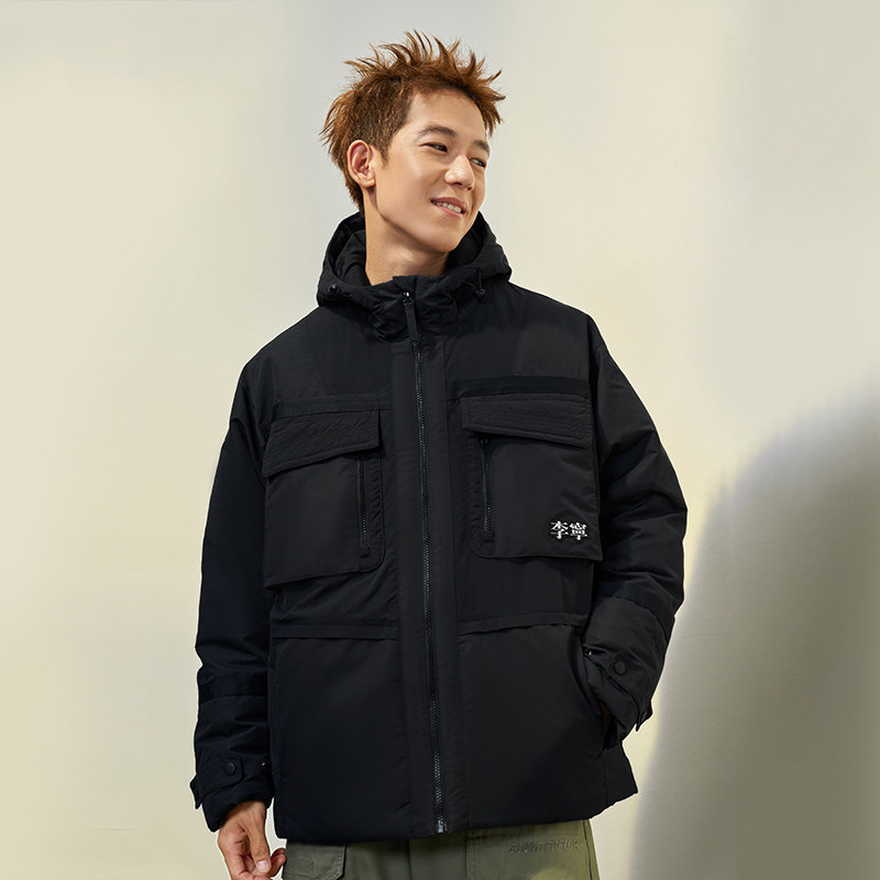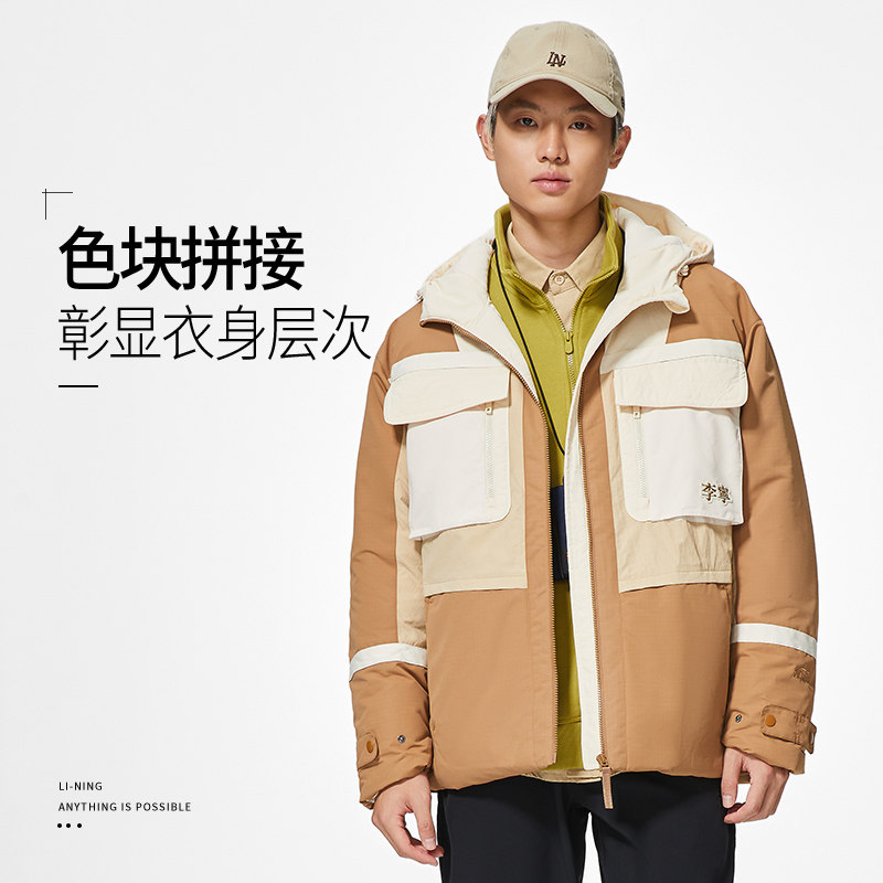 男子运动休闲连帽工装 新款 保暖羽绒服外套AYMS057 冬季 李宁正品