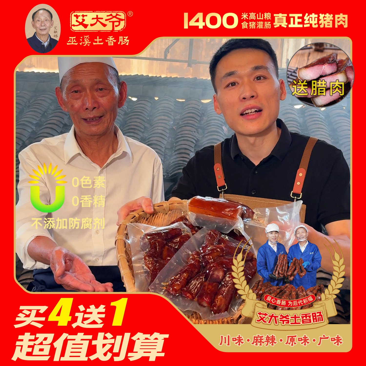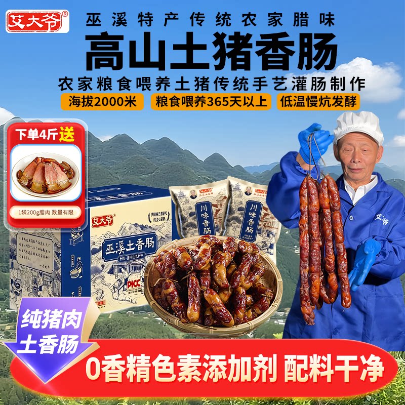 重庆巫溪纯猪肉腊肠无淀粉添加剂防腐剂年货送礼 艾大爷土香肠