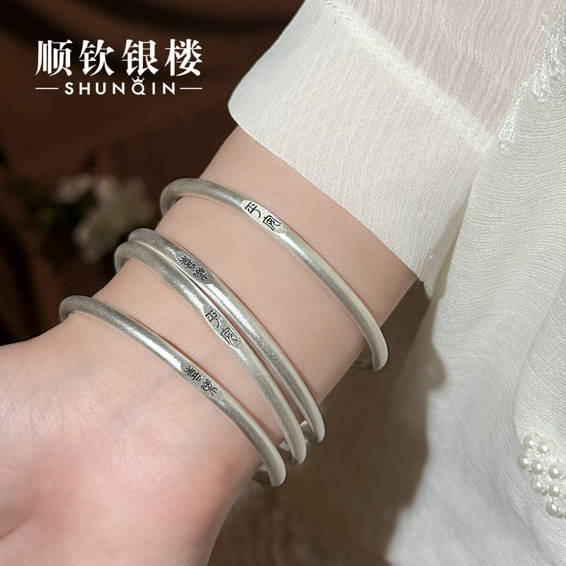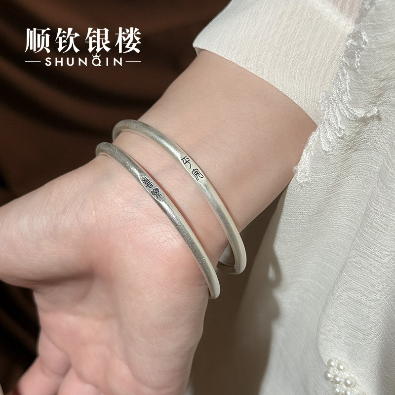 顺钦银楼S9999纯银手镯女古法银足银镯子平安喜乐新中式 新年礼物