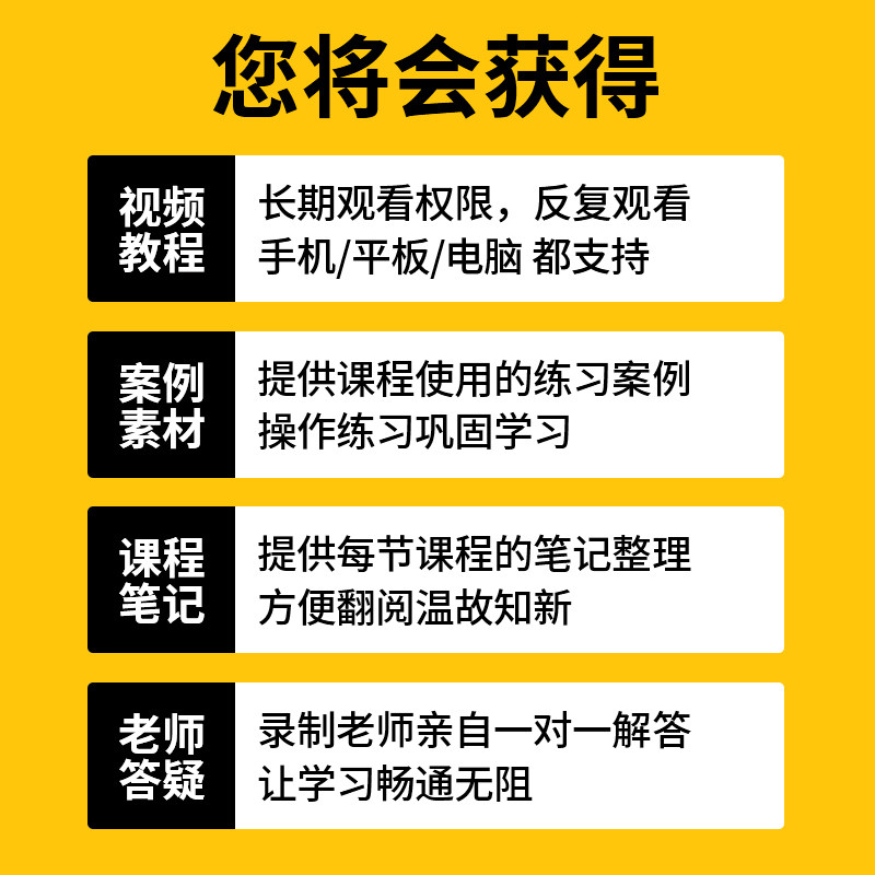 office教程全套Excel入门到精通Word PPT视频WPS办公学习课程网课 商品标签: 发布时间:2026年03月08日 市 场 价:298 元 折 扣 价:60 元 所 在 地:陕西 西安 店铺掌柜:兆迪科技旗舰店 去购买>> 下架了的话点我重新搜索 本站来源:淘宝(www.xiuda.net)购物与天猫(www.tianmaocn.com)是一个知名的电商平台,淘宝同时您也可以访问(www.taobwg.com)来发现更多精彩的购物选择。