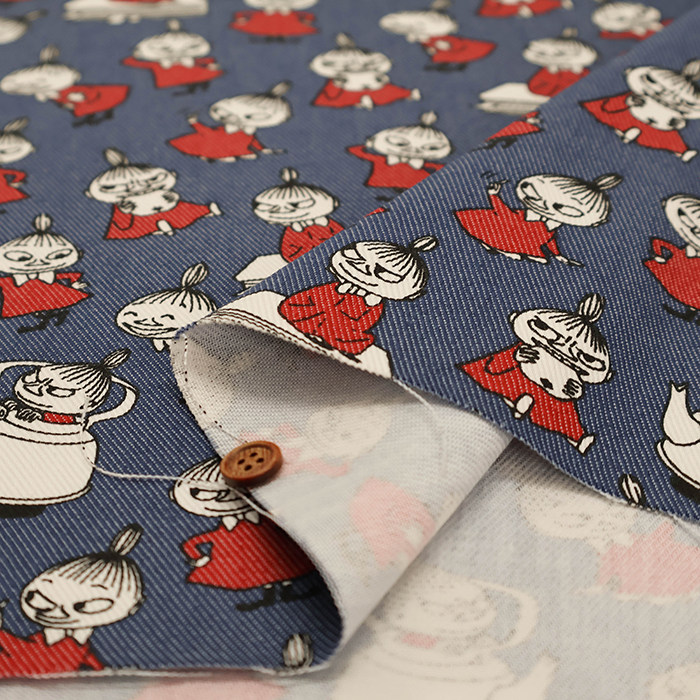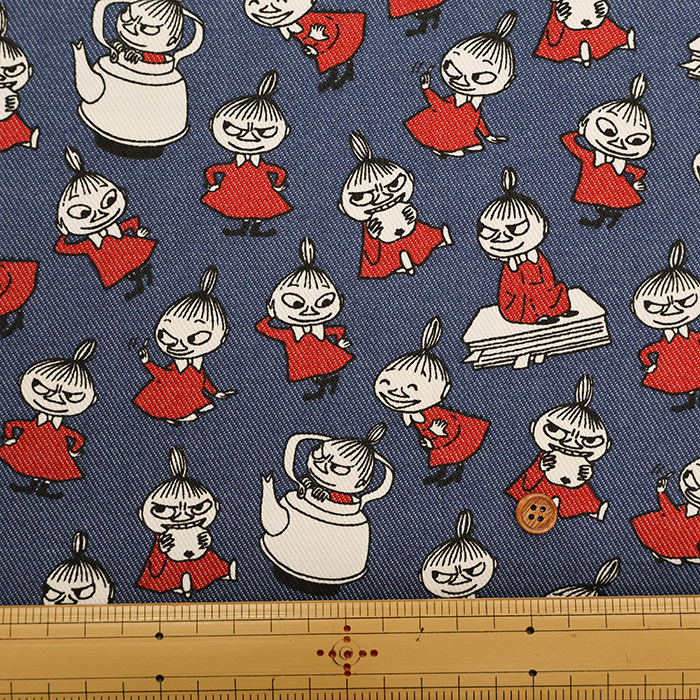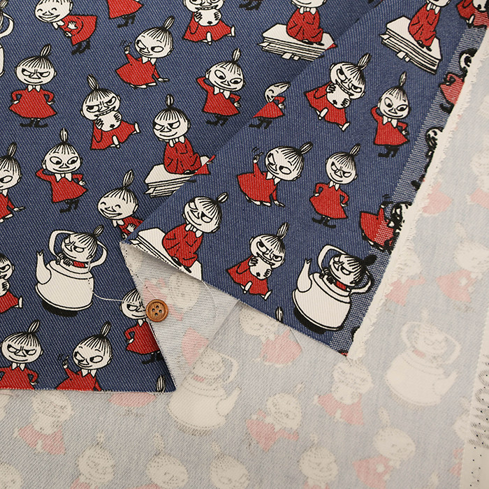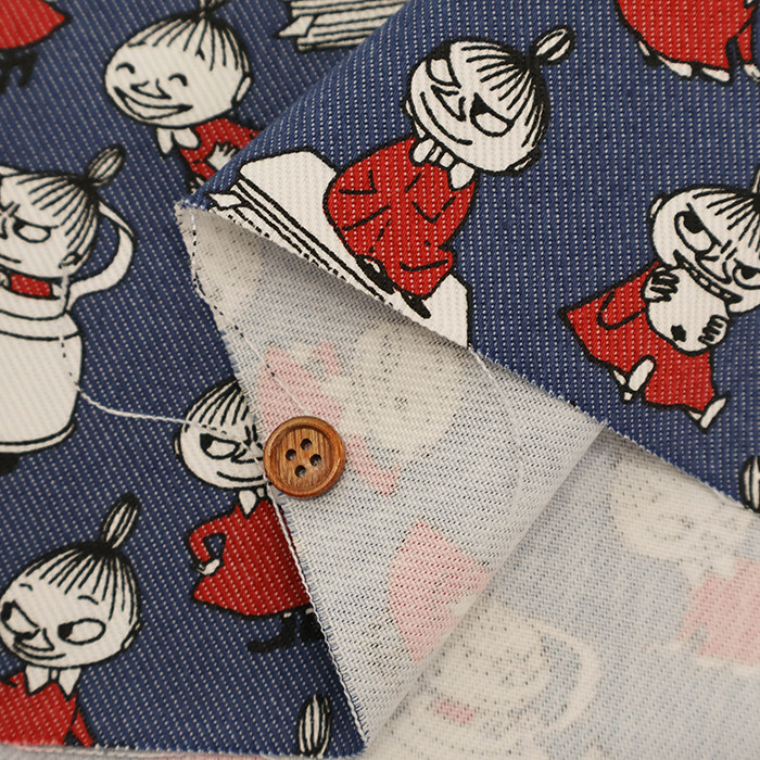 25cm日本进口棉聚酯混纺姆明moomin牛仔风动漫卡通角色斜纹布面料