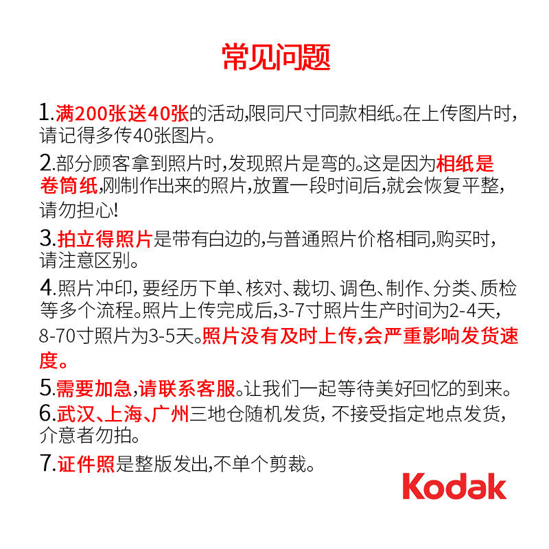 洗照片 柯达套餐相片冲洗3456大67寸高清照片冲印晒打印刷照片 包邮