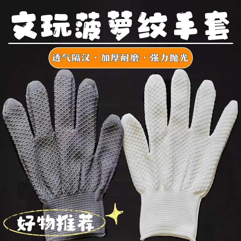 菠萝纹纳米手套文玩盘串盘玩盘珠抛光专用手串核桃纯棉鹿麂皮万毛