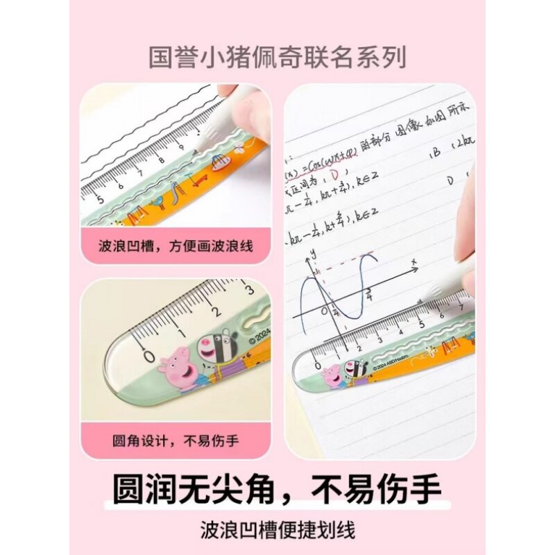 2026N新款 直尺小学生用日本kokuyo国誉波浪弯弯尺简约中高中生用绘图多功能刻度尺Z .小猪佩奇联名系列