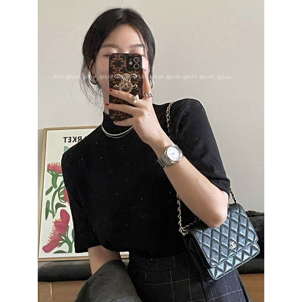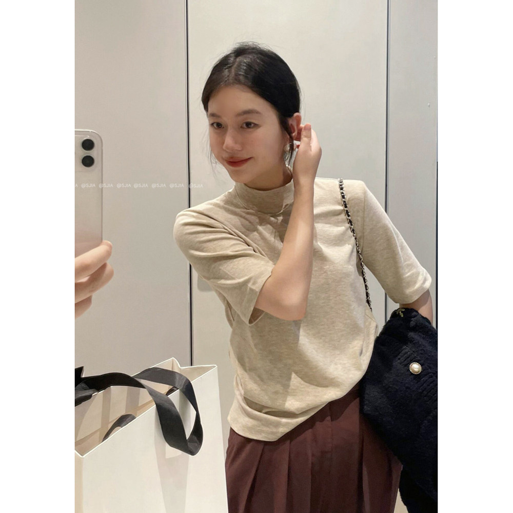 基础百搭休闲打底上衣 2024新款 韩系半高领正肩内搭短袖 T恤女夏季