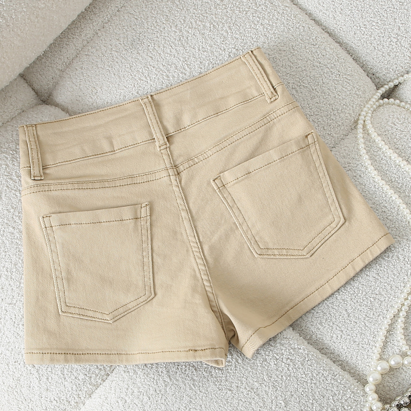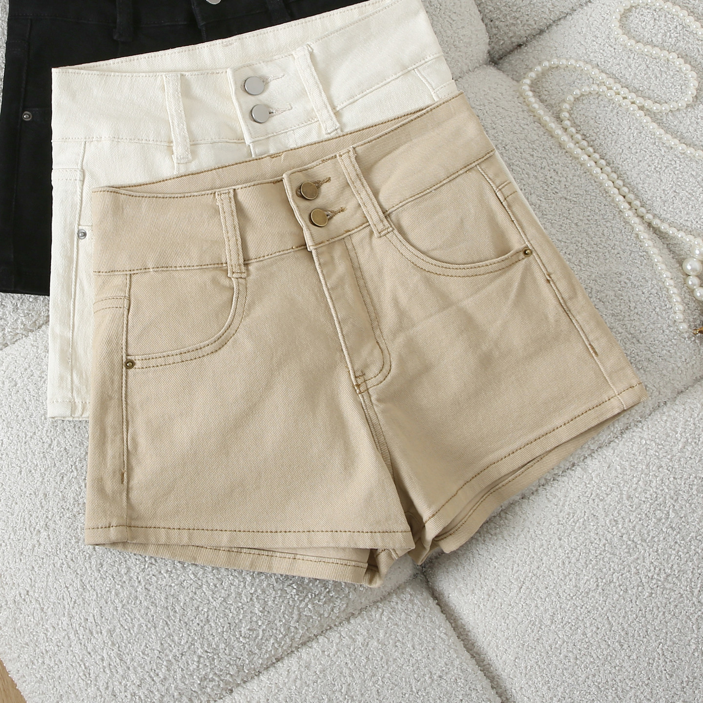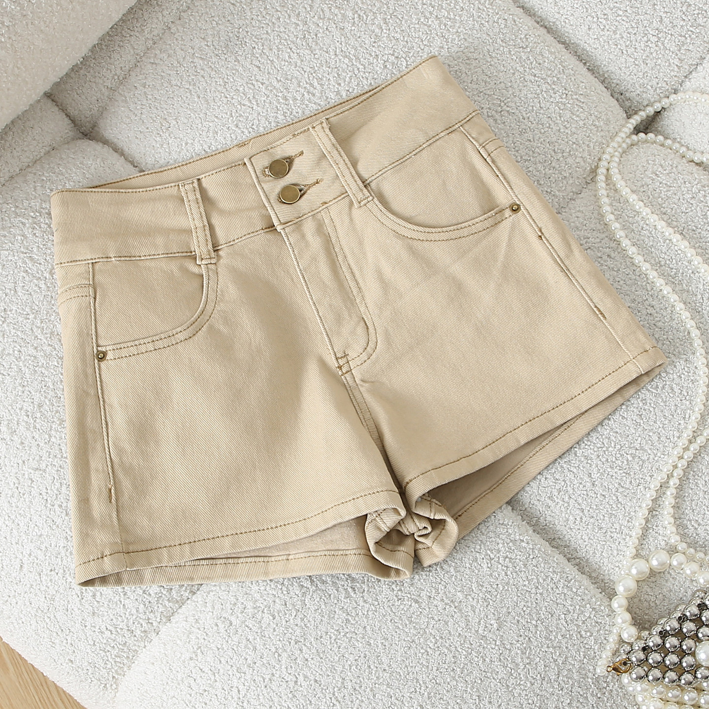 外穿包臀热裤 显瘦百搭A字阔腿裤 女夏季 拉夏贝尔卡其高腰牛仔短裤