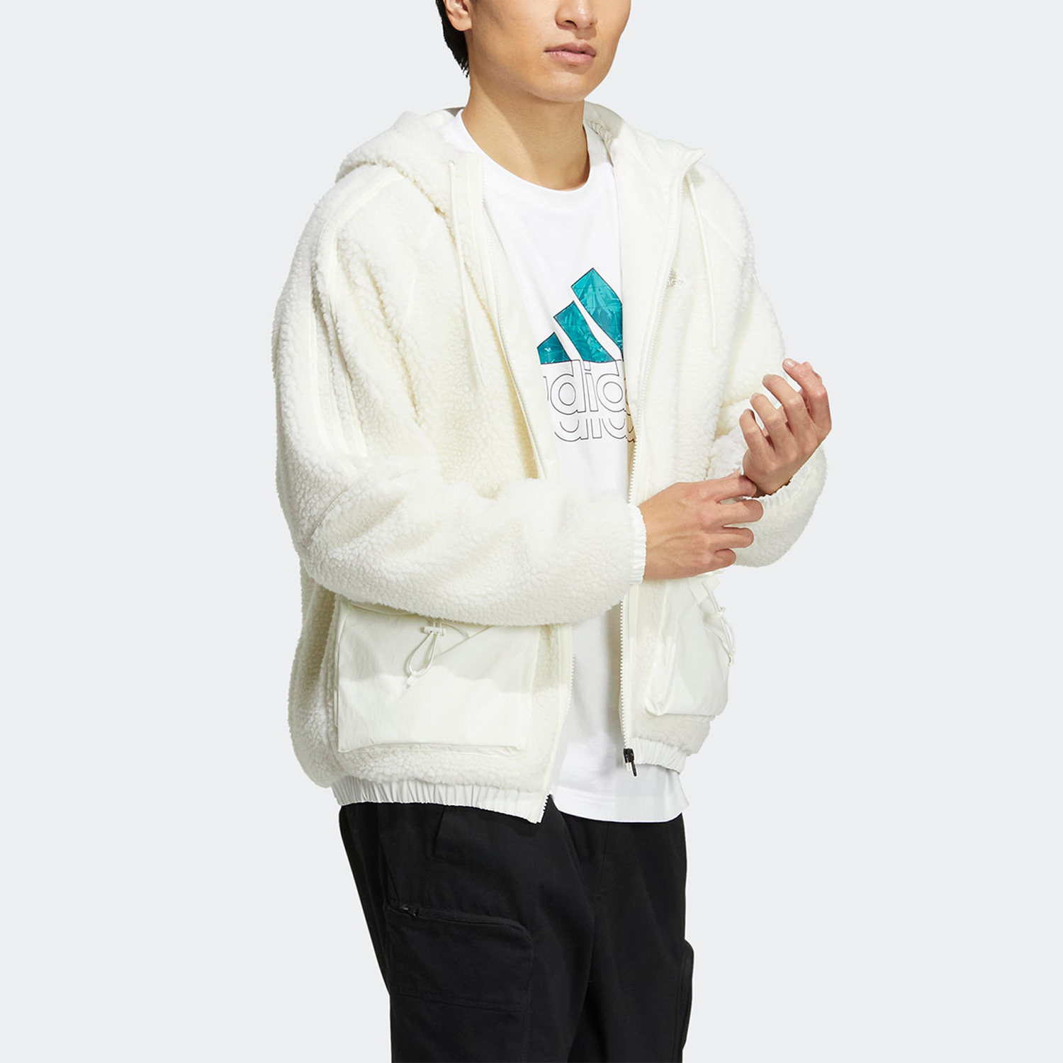 羊羔绒保暖男子运动夹克外套HR4442 新款 Adidas 阿迪达斯正品