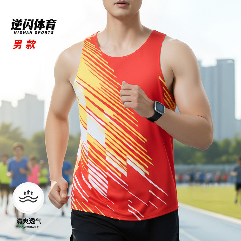 专业跑步背心男女田径服运动套装 马拉松速干比赛服健身训练服上衣