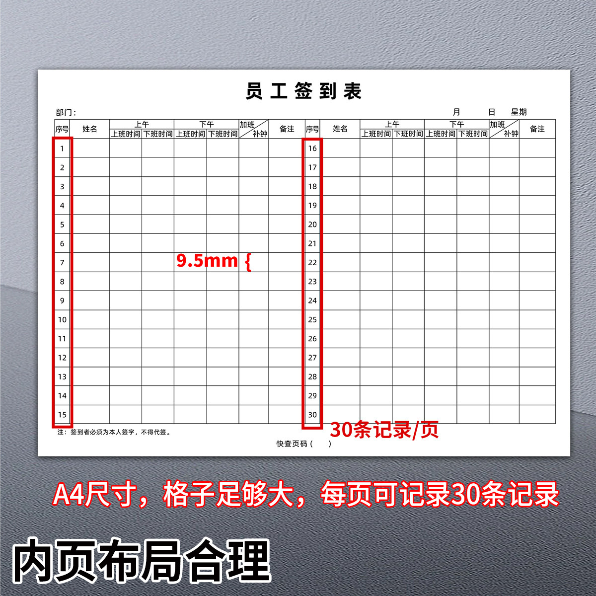 员工签到表职工企业上班下班打卡人事行政用工厂工人签到登记本员工上下班时间签到表考勤表记录本通用打卡本