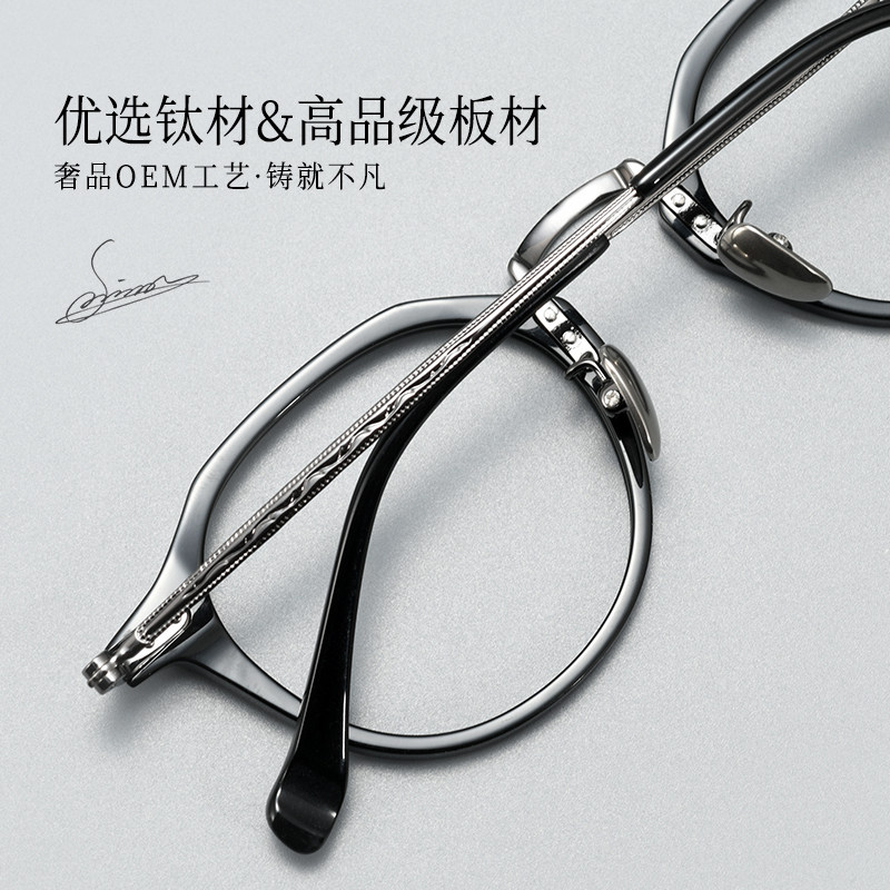 精雕系列 设计师小众复古文艺板材纯钛近视眼镜男丹阳眼镜工厂店