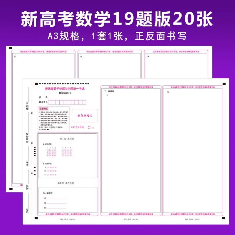 2026新版 高考数学答题卡19题22题全国卷考试数学语文英语答题卡纸 商品标签: 2026新版 发布时间:2026年03月08日 市 场 价:7.9 元 折 扣 价:7.9 元 所 在 地:天津 店铺掌柜:金博士文化 去购买>> 下架了的话点我重新搜索 本站来源:淘宝(www.xiuda.net)购物与天猫(www.tianmaocn.com)是一个知名的电商平台,淘宝同时您也可以访问(www.taobwg.com)来发现更多精彩的购物选择。