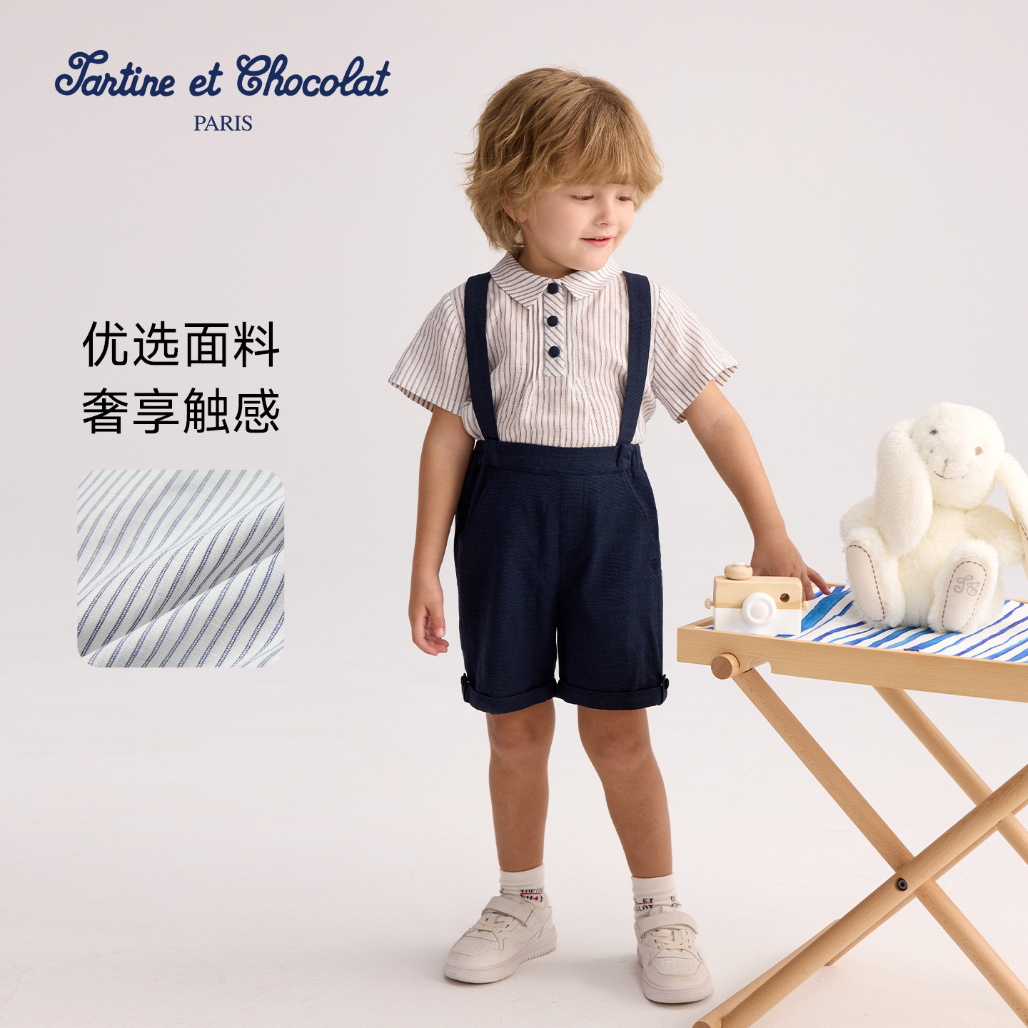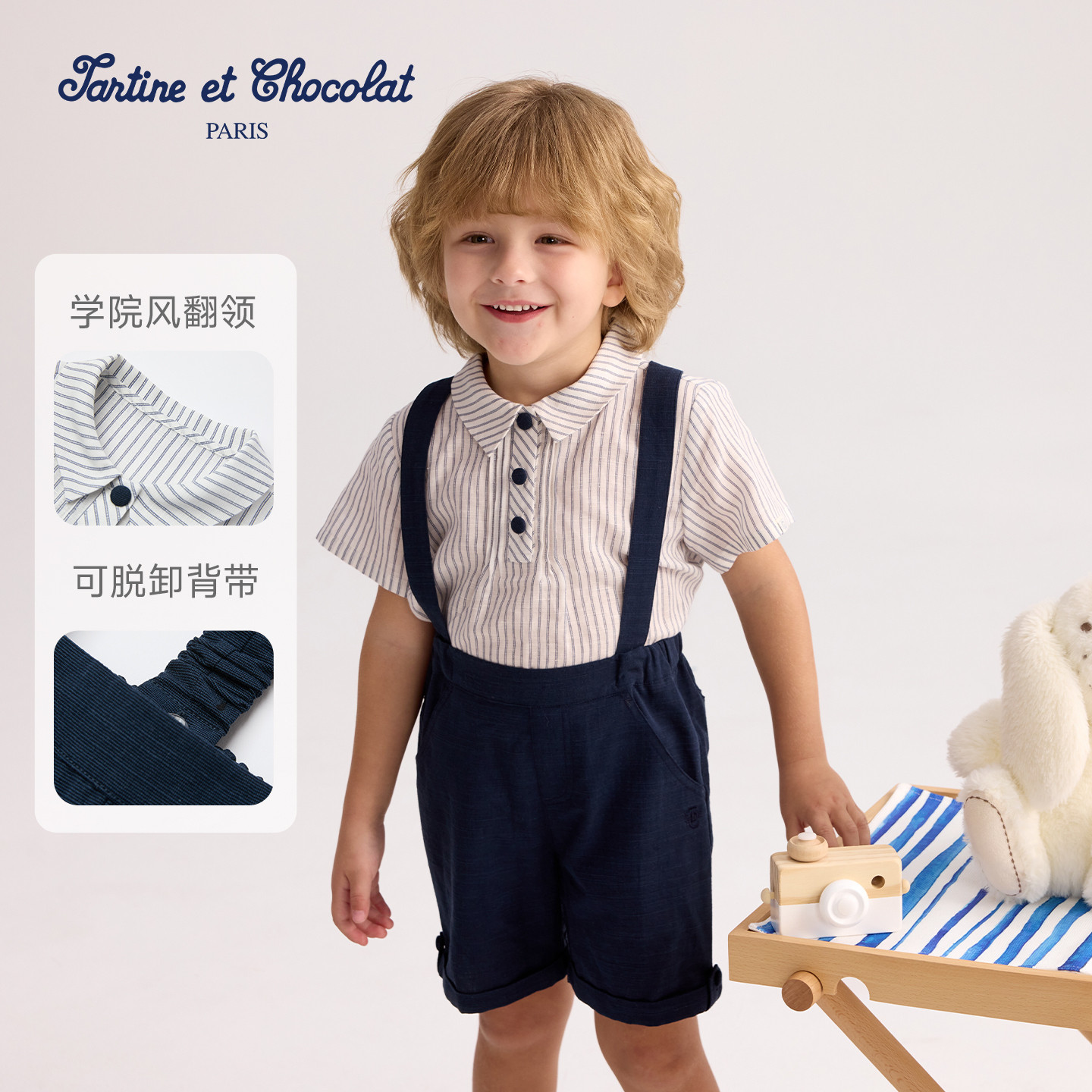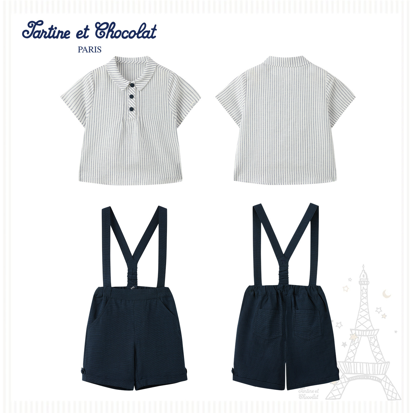tartineetchocolat法国巧克力童装 两件套 26春夏新男童T恤背带裤