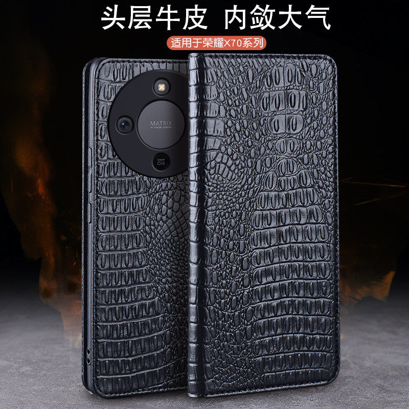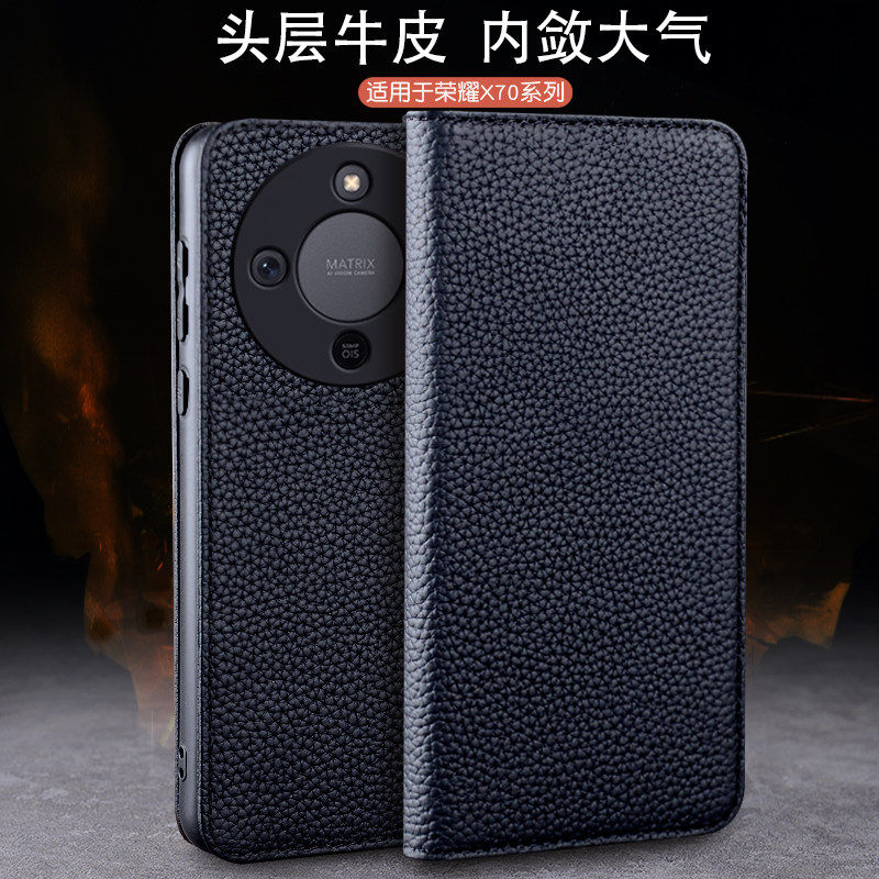 奢华商务手机套 磁吸翻盖时尚 适用于荣耀X70手机保护套全包防摔高档牛皮新款 荣耀x70高级感保护壳X70个性