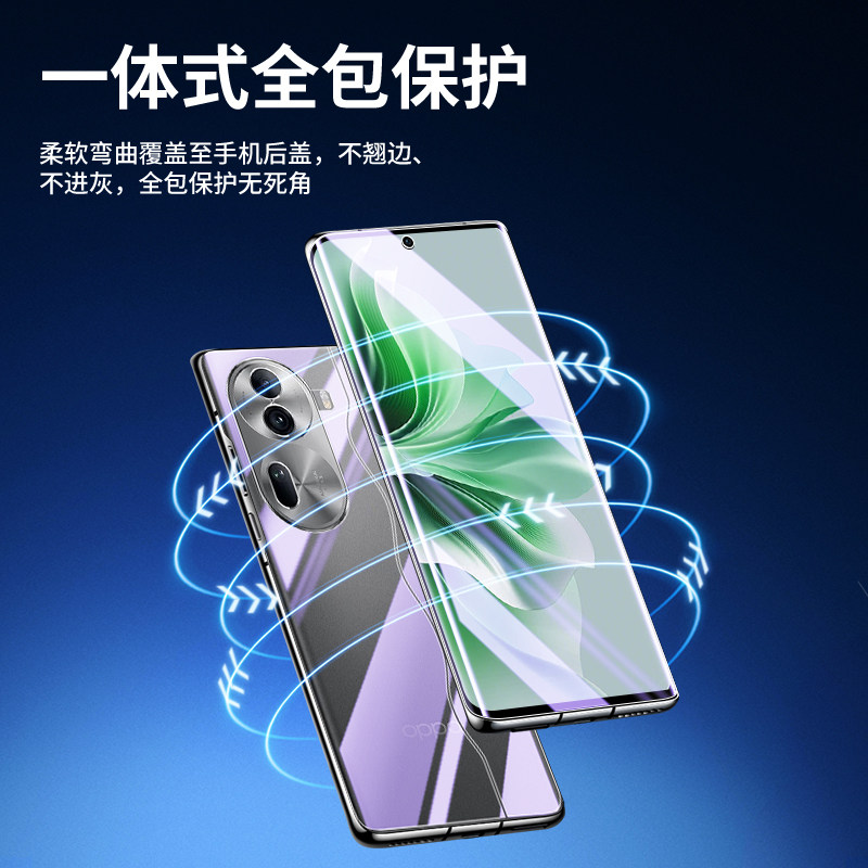 尤星适用opporeno11钢化水凝膜全屏覆盖磨砂一体高清防指纹OPPOreno11pro手机膜抗蓝光全包边前后保护软膜por