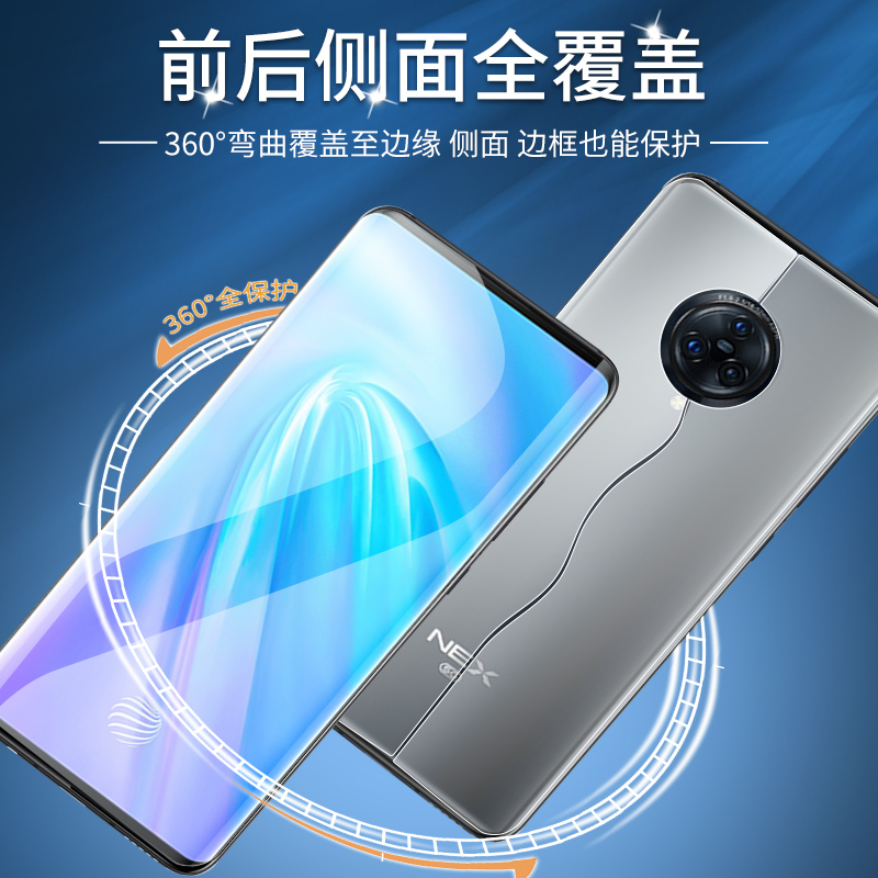 闪擎适用vivonex3钢化水凝膜5G全屏覆盖nex3s手机贴膜抗蓝光vovonex3s全包边防爆vivoNEX3前后一体防摔保护膜