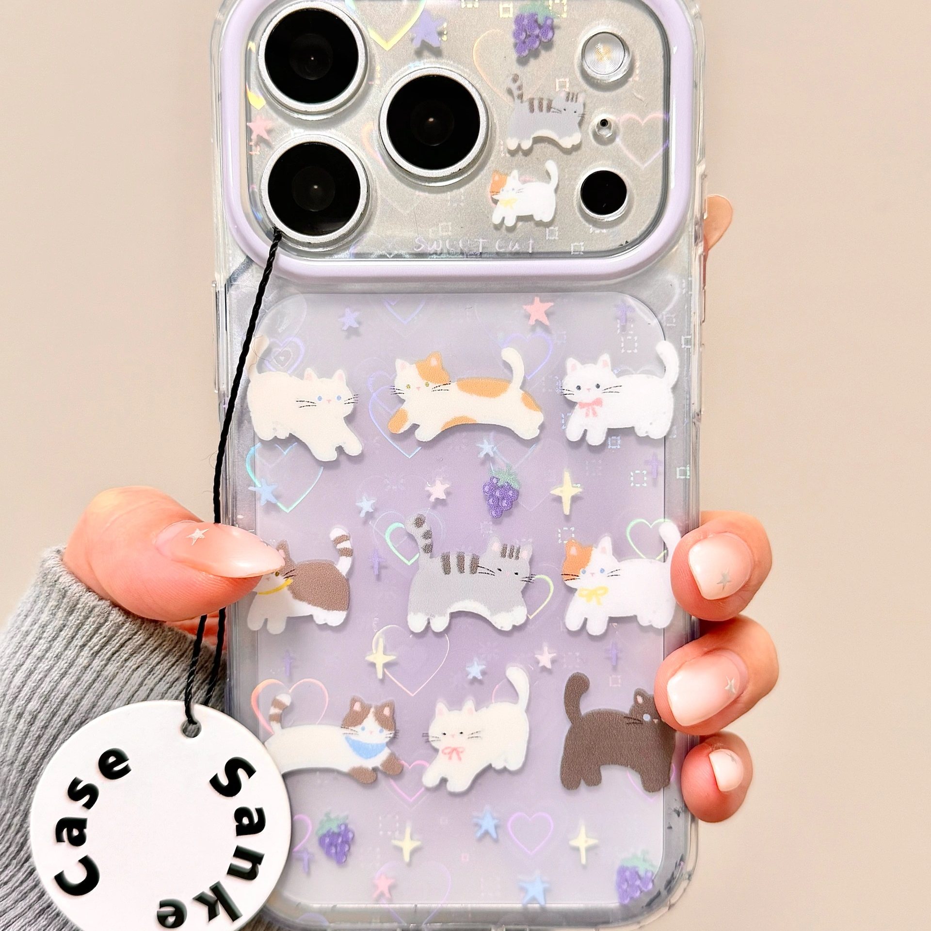新款 紫色满屏猫咪适用iPhone17ProMax手机壳16苹果15防摔软男女14
