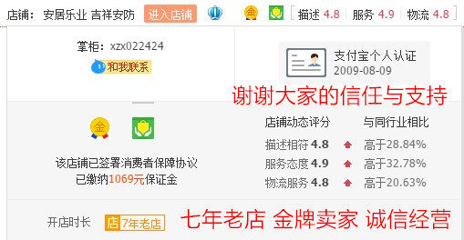 店铺掌柜:安居乐业 吉祥安防