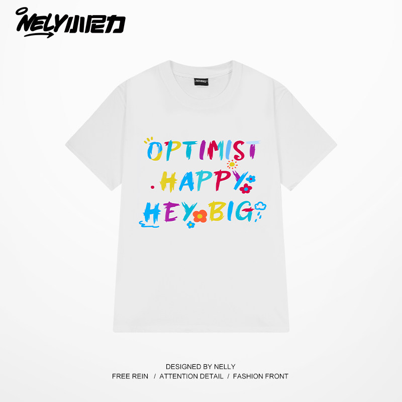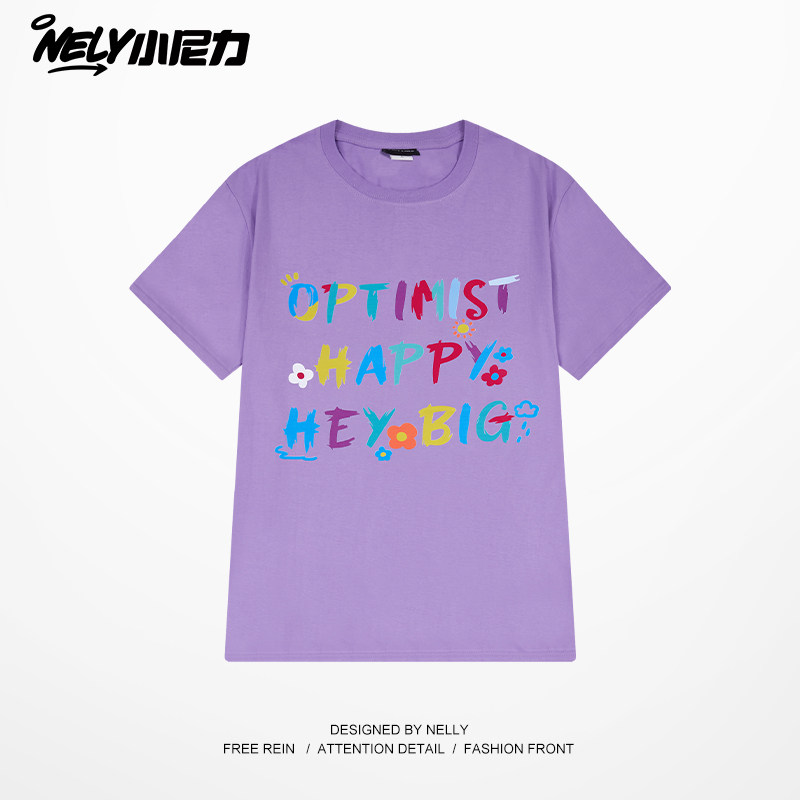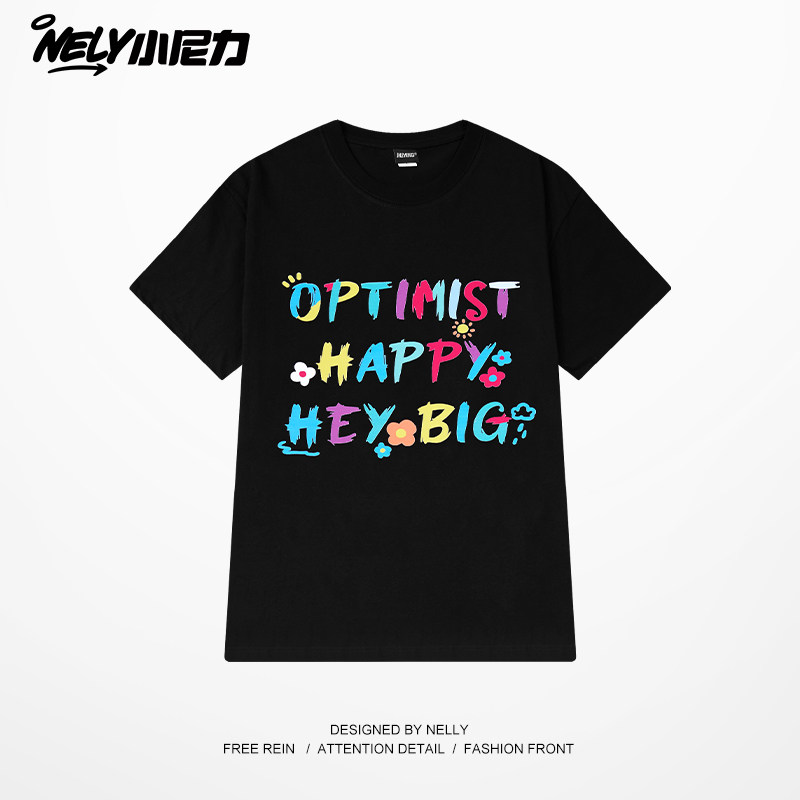 复古潮牌上衣 美式 NELY小尼力创意彩色字母短袖 t恤男女2026夏新款