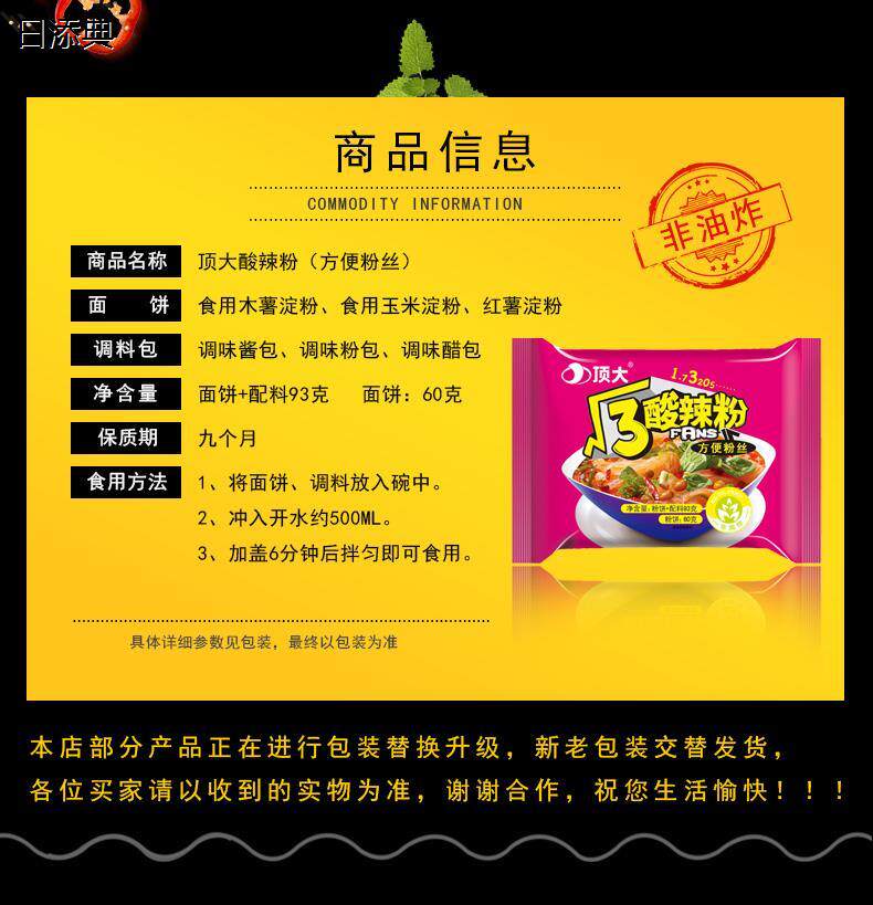 顶大酸辣粉根号3粉丝根号三麻辣烫酸辣米线速食袋 免煮非油炸 包邮 商品标签: 包邮 免煮非油炸 发布时间:2026年03月15日 市 场 价:36.45 元 折 扣 价:16.4 元 所 在 地:广东 广州 店铺掌柜:日添典旗舰店 去购买>> 下架了的话点我重新搜索 本站来源:淘宝(www.xiuda.net)购物与天猫(www.tianmaocn.com)是一个知名的电商平台,淘宝同时您也可以访问(www.taobwg.com)来发现更多精彩的购物选择。
