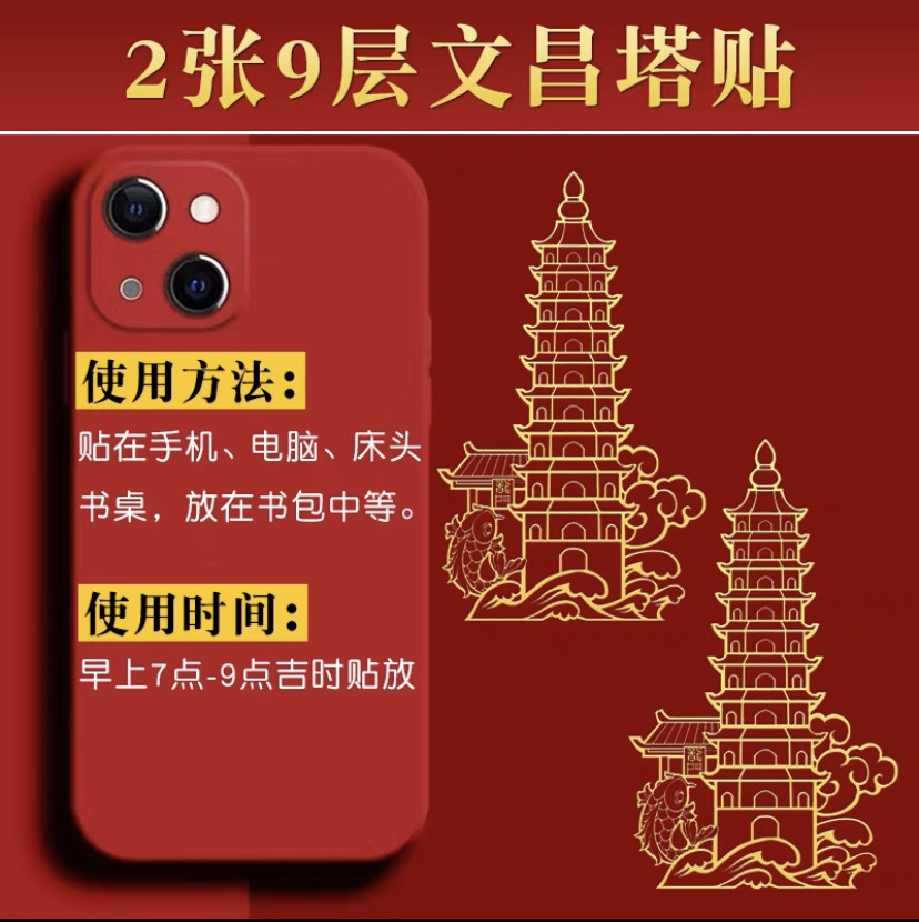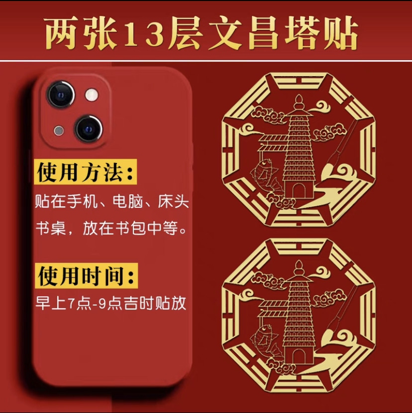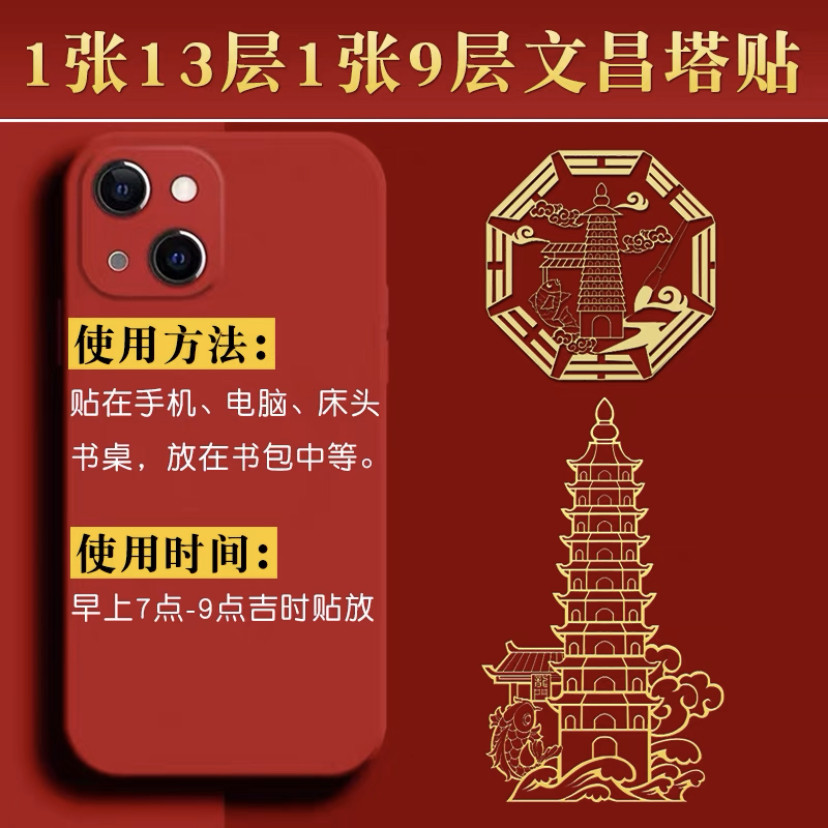 聚缘堂文昌塔隐形门符手机金属贴勤学益智文昌帝君金属贴电脑书桌
