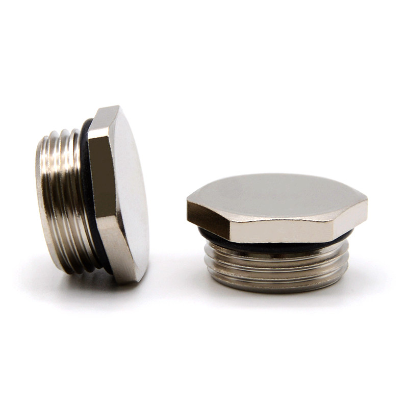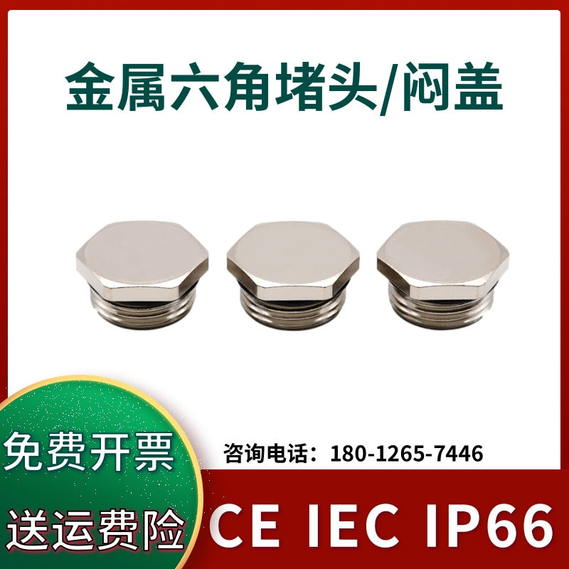 WYD外六角金属闷盖防水堵头铜合金镀镍旋入式 塞头盲堵M20封堵