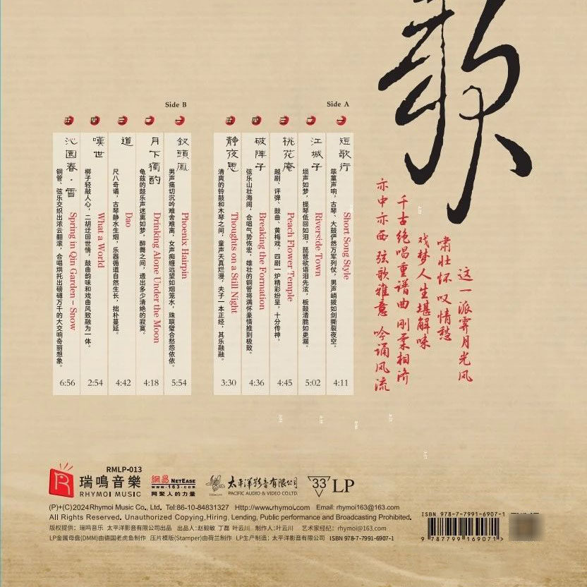 短歌行 关栋天 33转留声机专用12寸黑胶LP 瑞鸣唱片 正版