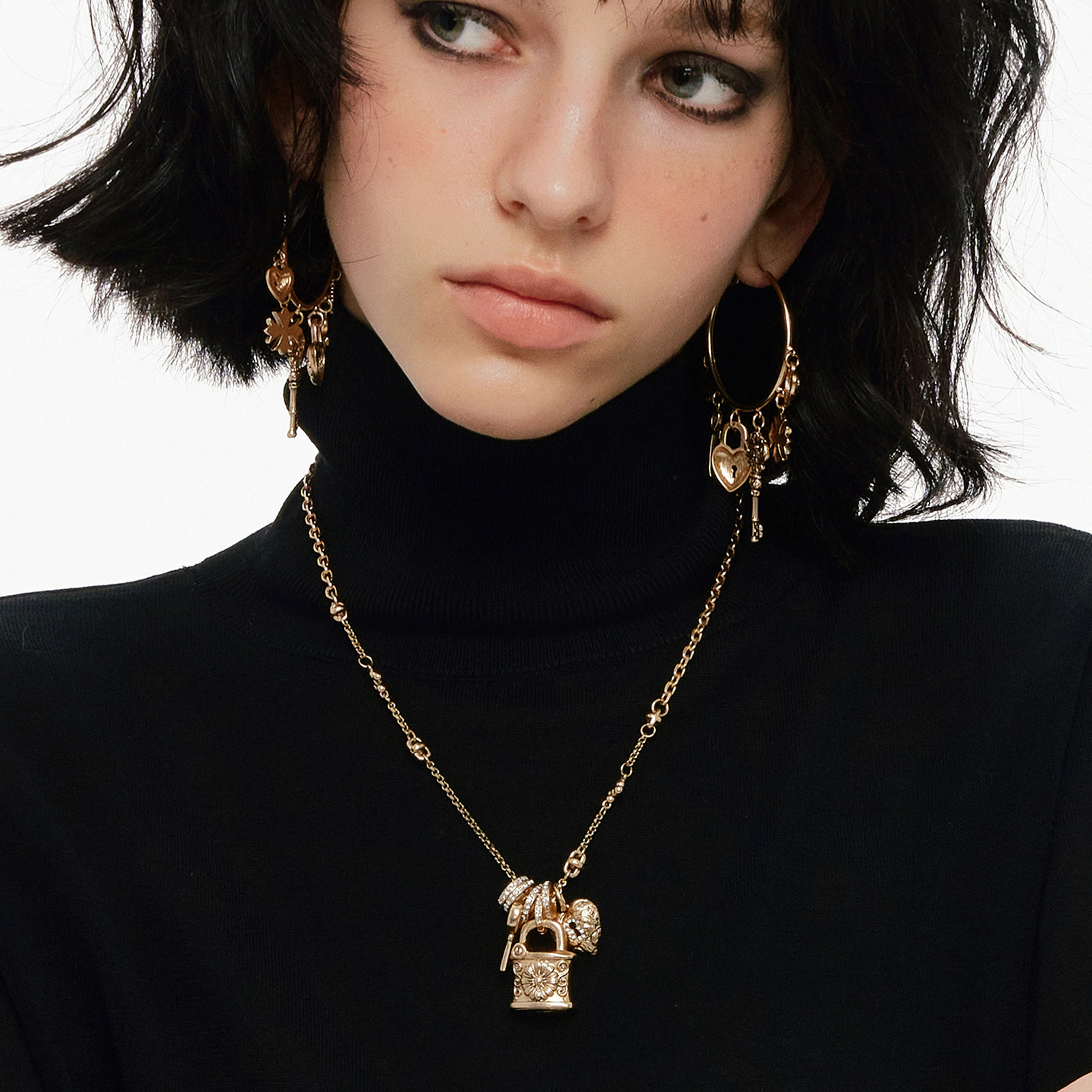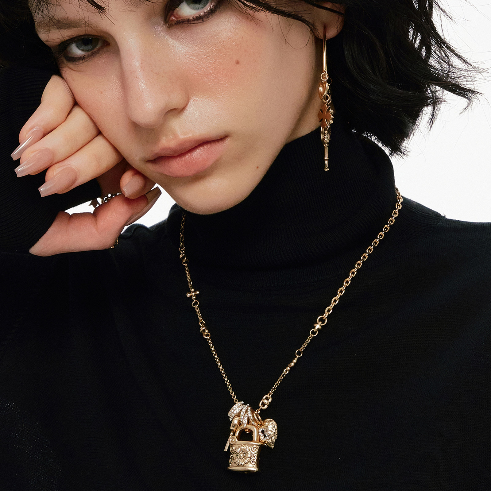 SUMIYAKI 复古雏菊项链爱心锁毛衣链毛衣链vintage 原创美式