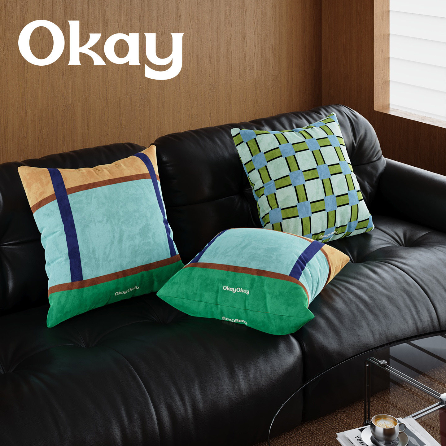 okay浅海月台沙发客厅抱枕套沙发抱枕靠垫办公室腰枕套床头靠背垫