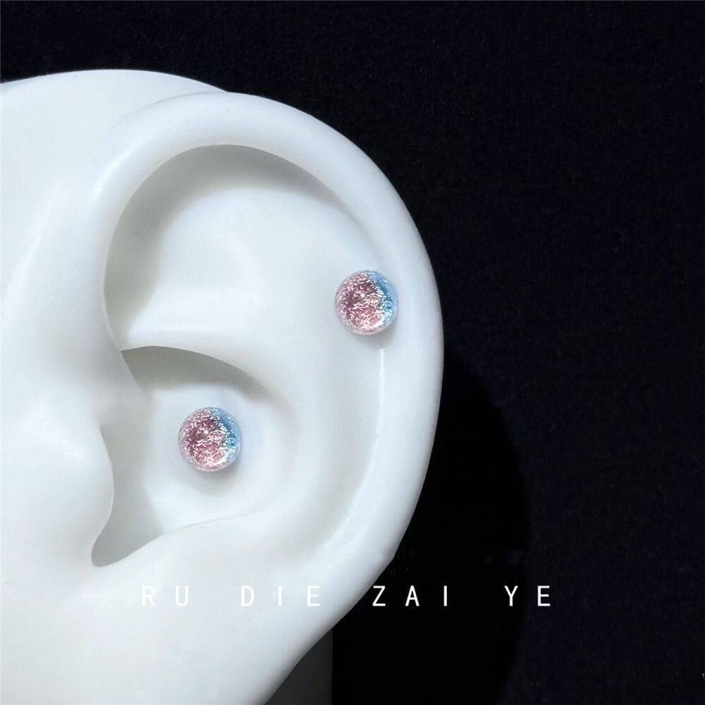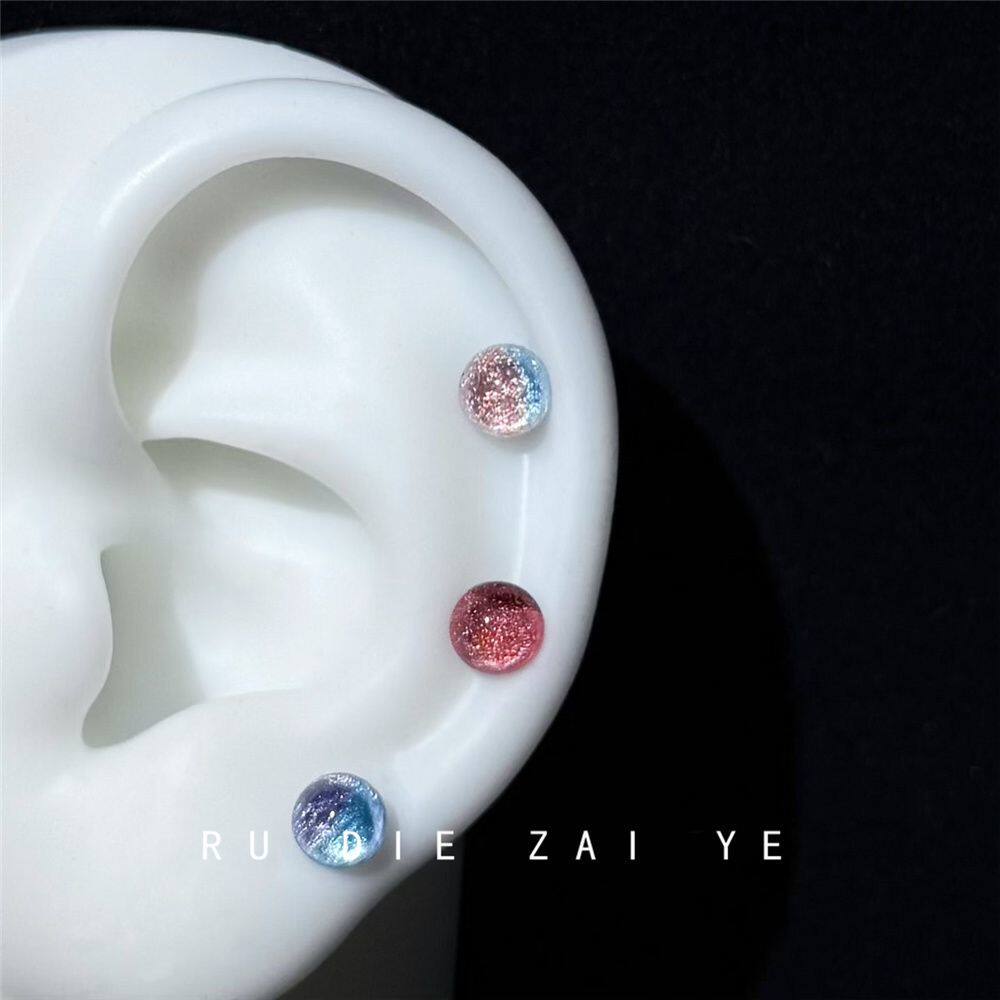 如蝶在野 梦幻渐变半圆耳骨钉钛钢不掉色螺丝耳蜗钉耳钉 月光手书