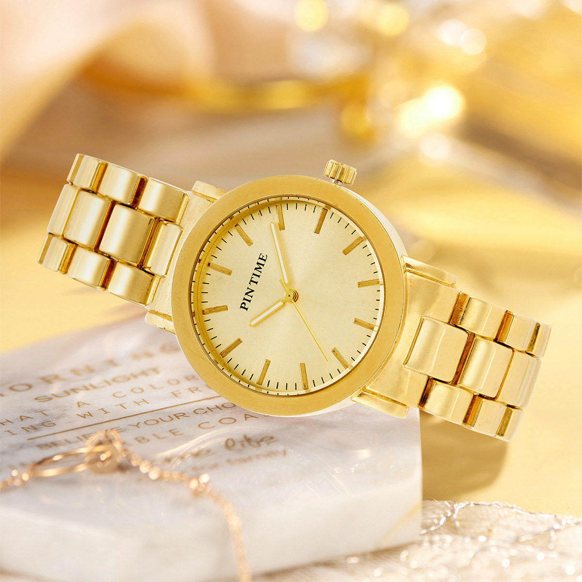中性金色防水石英手表欧美流行腕表 外贸手表热卖 PINTIME 品时新款