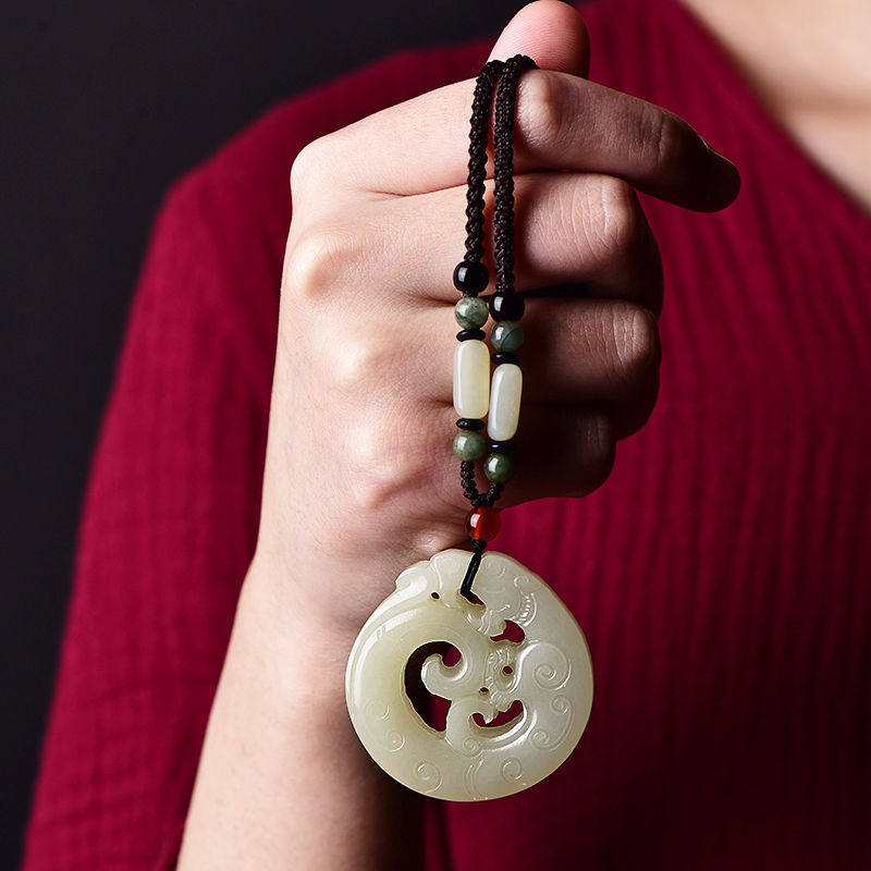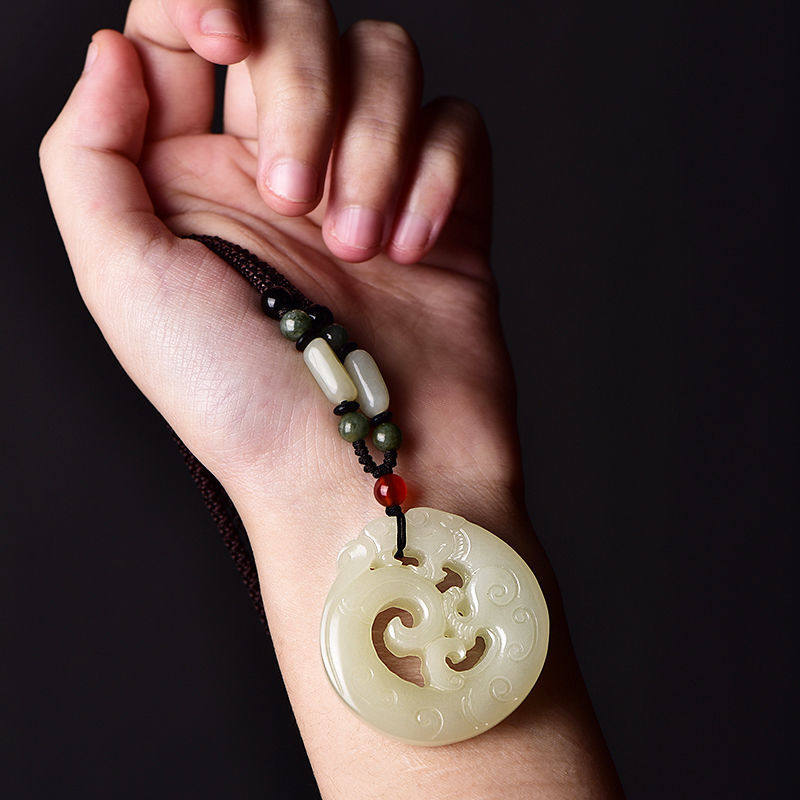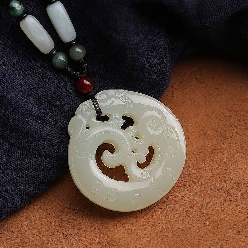 天然白玉镂空龙吊坠龙形毛衣链真玉吊坠女玉坠玉佩男项链百搭