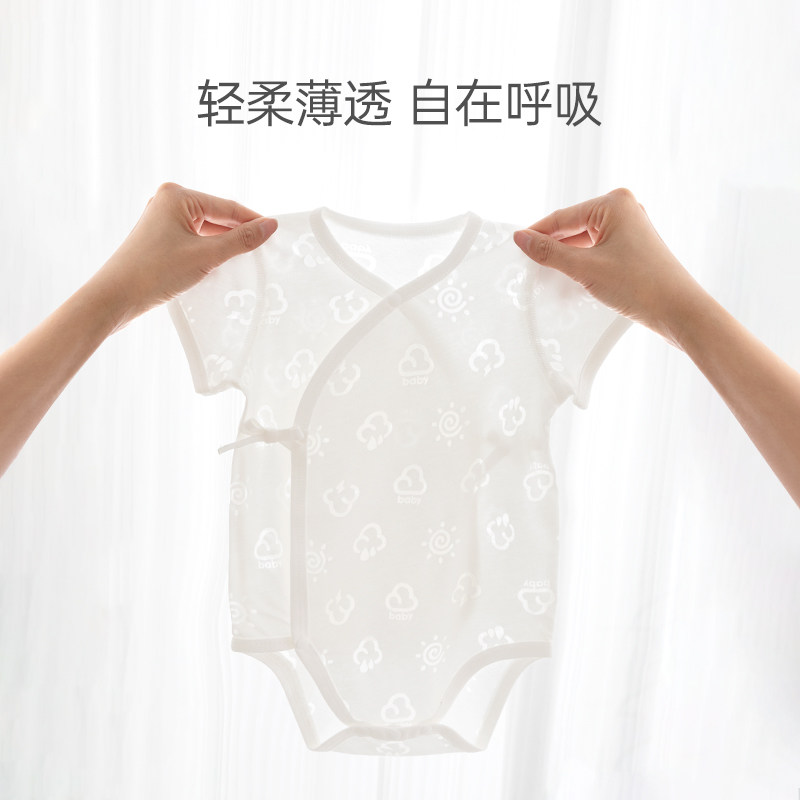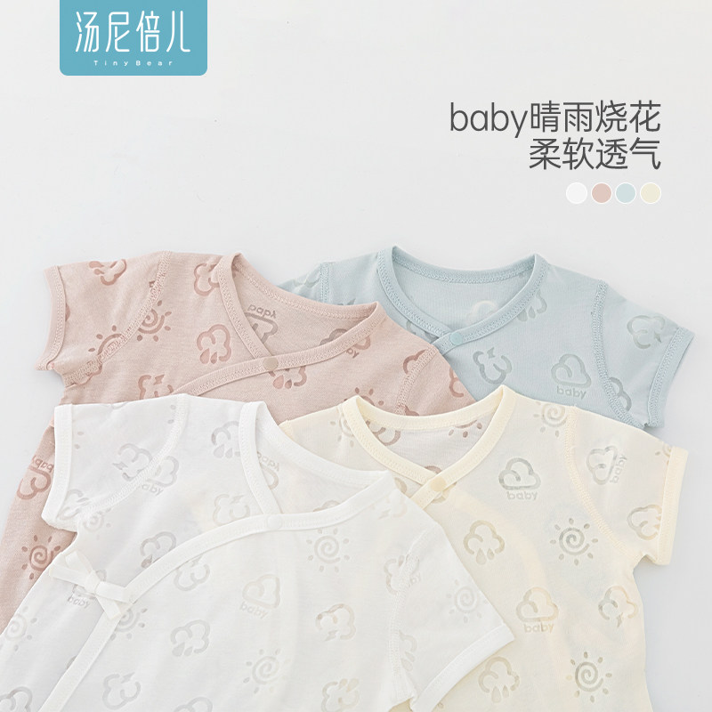 汤尼倍儿新生儿包屁衣短袖 烧花透气婴儿系带衣服宝宝三角哈衣 夏季