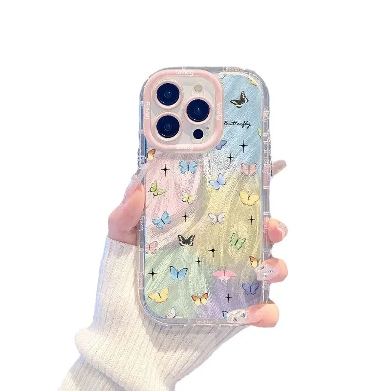 12全包 14promax小众13PR0 羽纱多彩蝴蝶苹果手机壳16 15PROMAX14