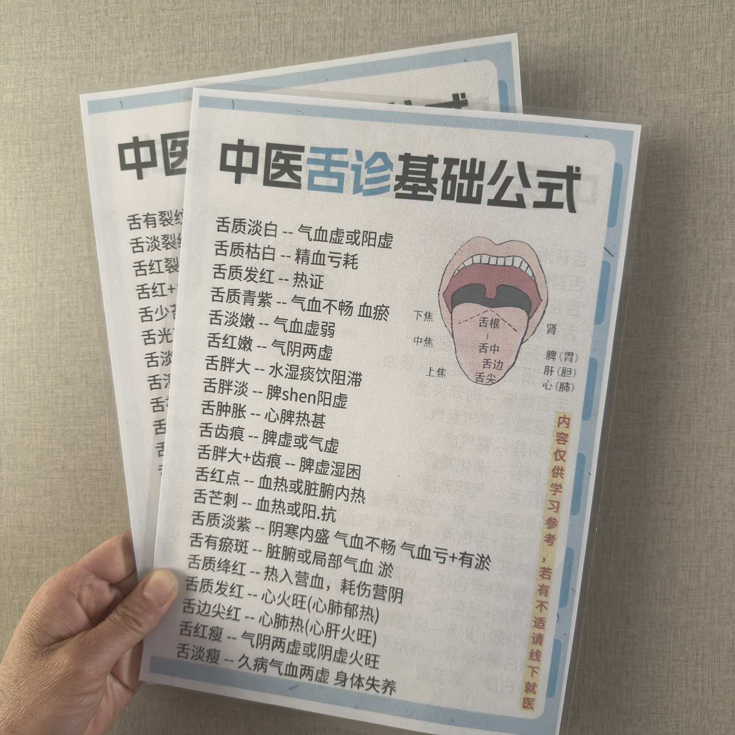 舌诊基础公式 学习卡片理论知识自学入门速记笔记卡 中医诊断公式 商品标签: 发布时间:2026年03月14日 市 场 价:17.9 元 折 扣 价:12.9 元 所 在 地:福建 龙岩 店铺掌柜:奇思妙想优品早教屋 去购买>> 下架了的话点我重新搜索 本站来源:淘宝(www.xiuda.net)购物与天猫(www.tianmaocn.com)是一个知名的电商平台,淘宝同时您也可以访问(www.taobwg.com)来发现更多精彩的购物选择。