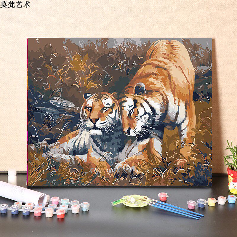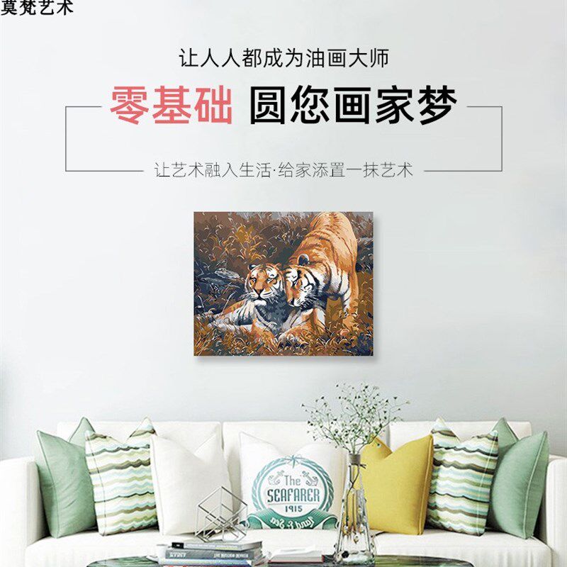 新品 饰画油 数字油画diy填充手工虎王虎后F填色画画虎年老虎客厅装