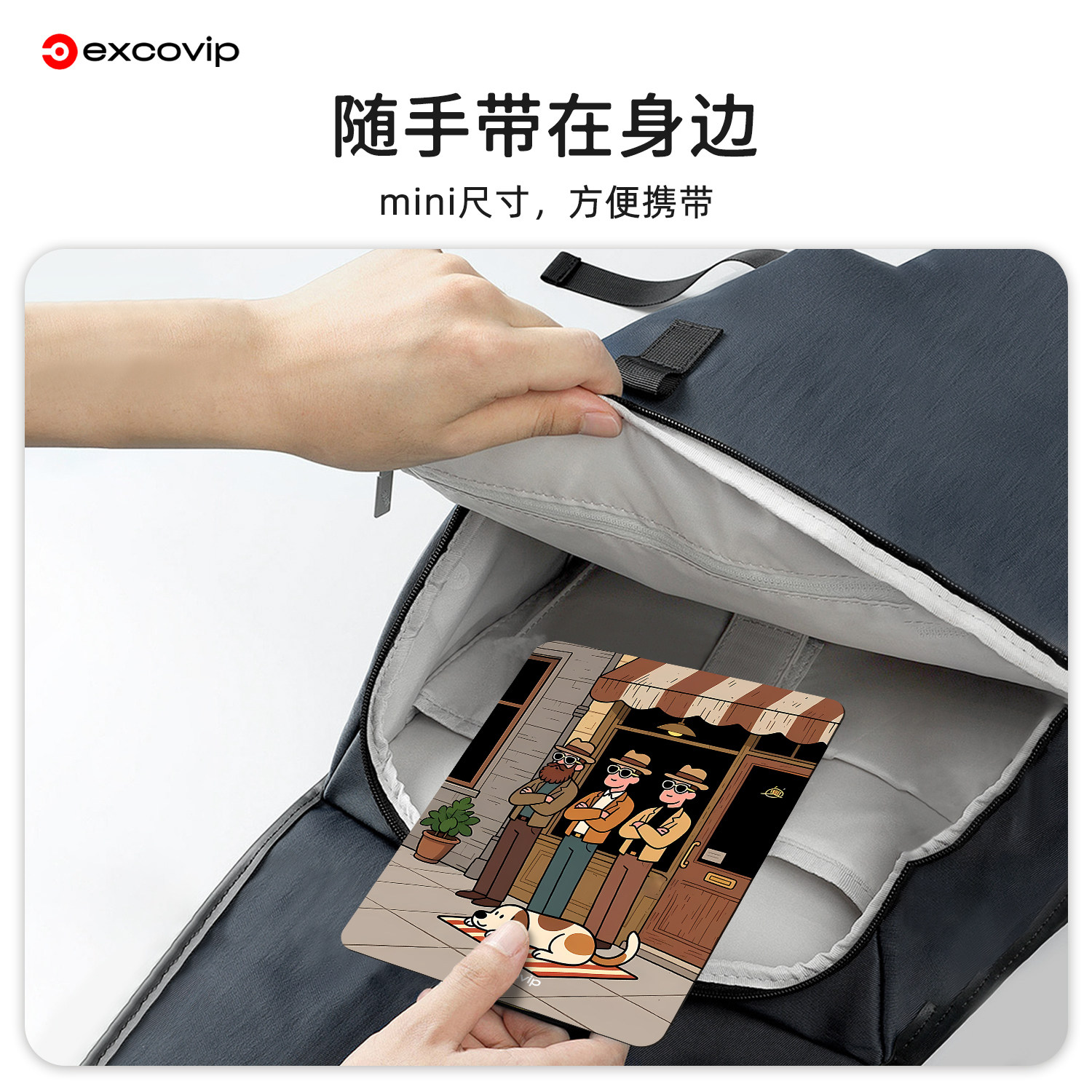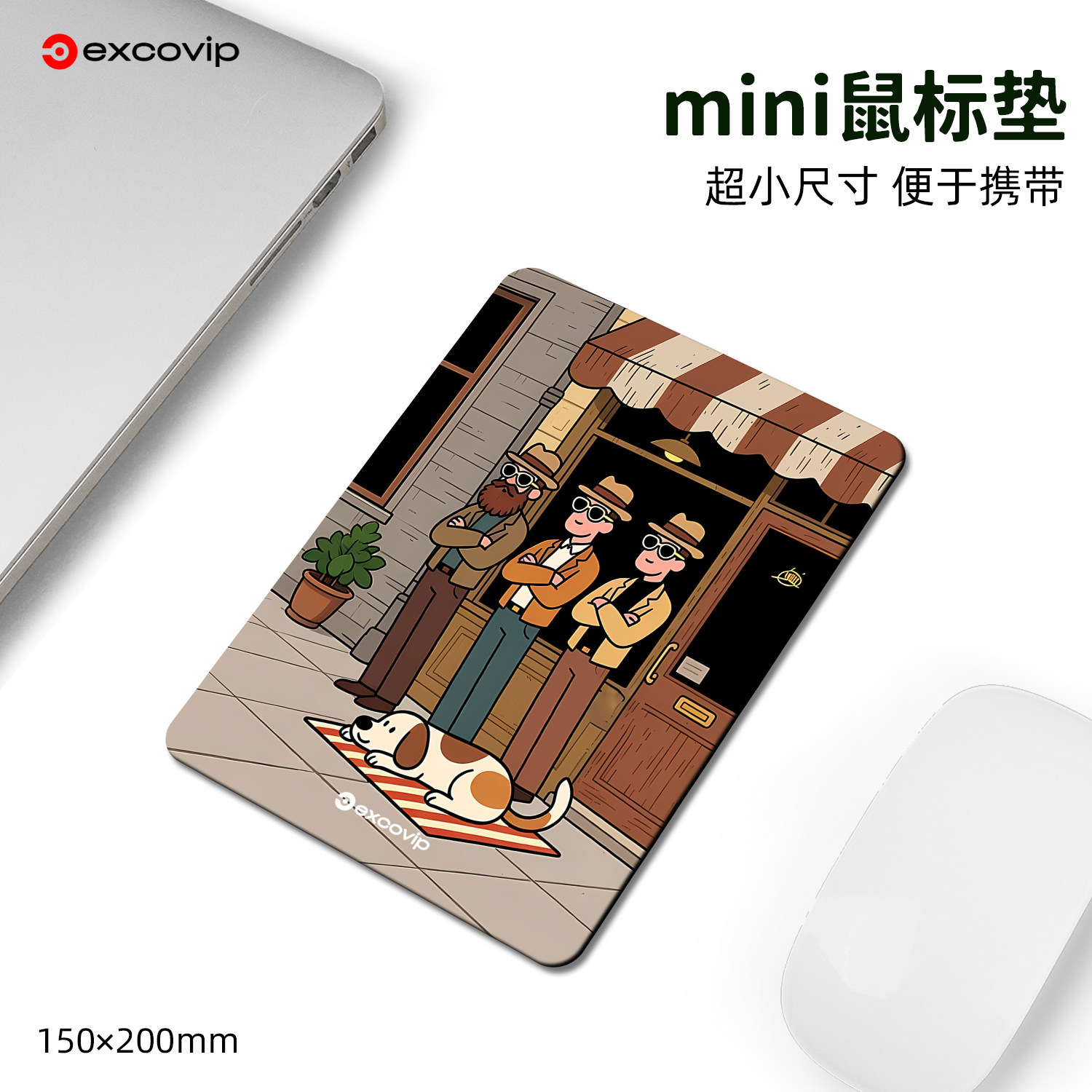 Mini三人一狗鼠标垫 办公出差电脑卡通小号垫锁边布面防滑底1172