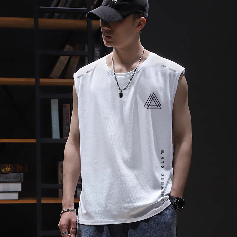圆领无袖 冰丝背心男透气速干运动休闲宽坎肩外穿男士 t恤 精选