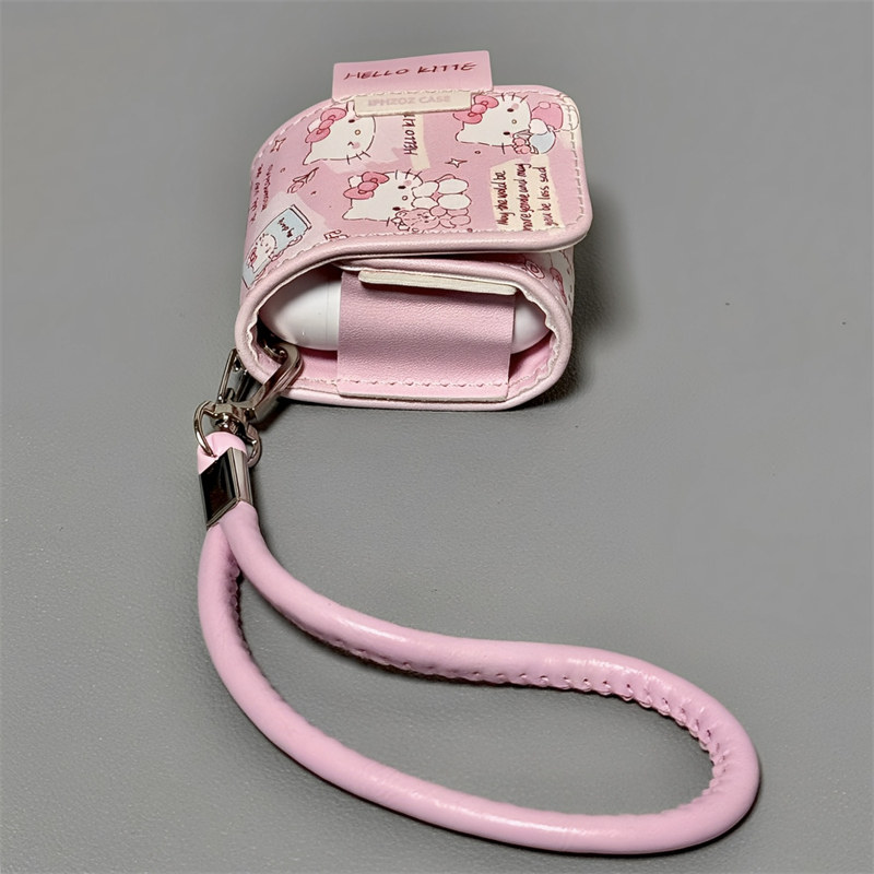 4保护壳带挂绳airpods3代蓝牙耳机壳女 适用Airpods pro3耳机保护套皮质粉色HelloKitty苹果耳机套AirPods1