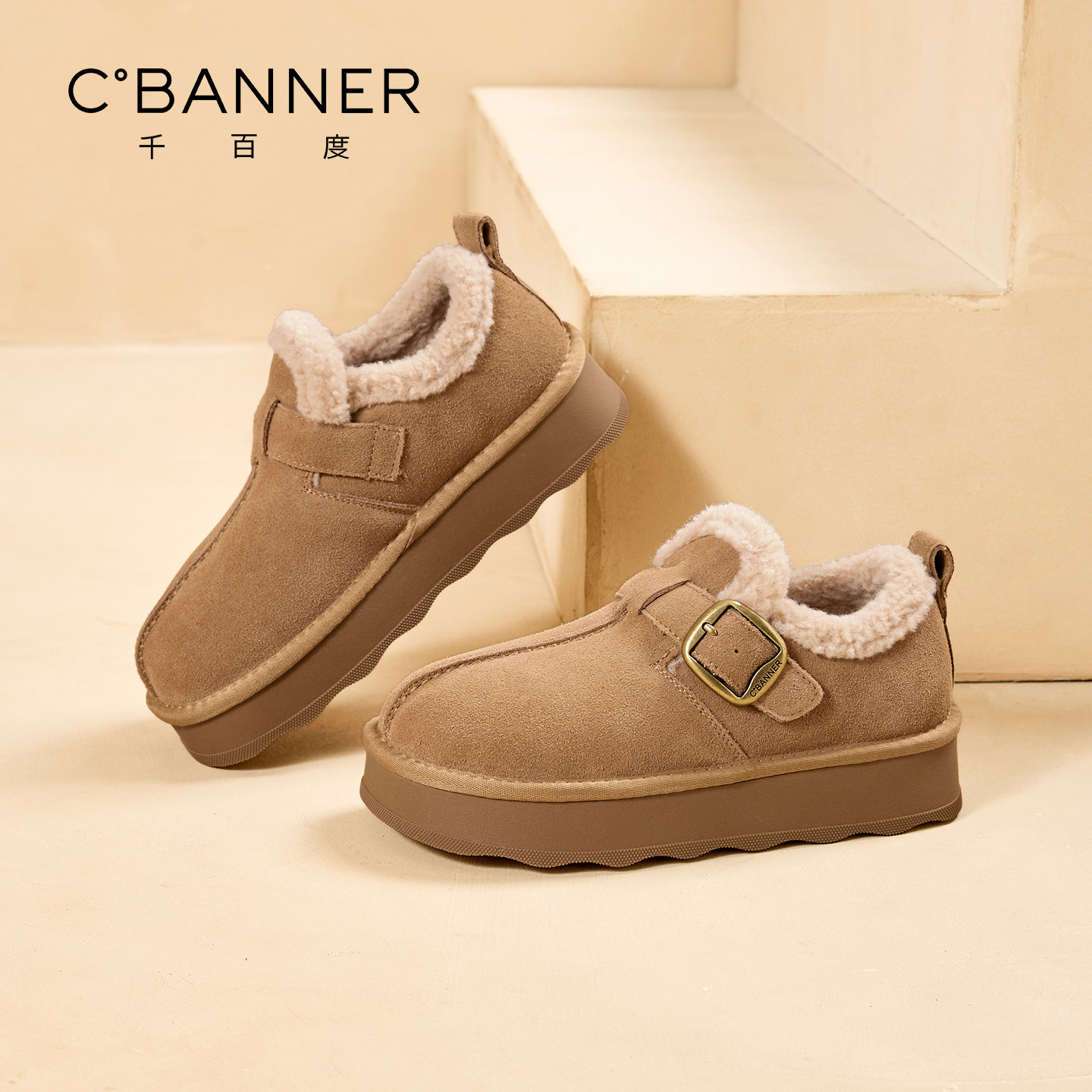 百搭保暖毛绒雪地靴外穿毛毛棉鞋 新款 加绒2025冬季 千百度勃肯鞋