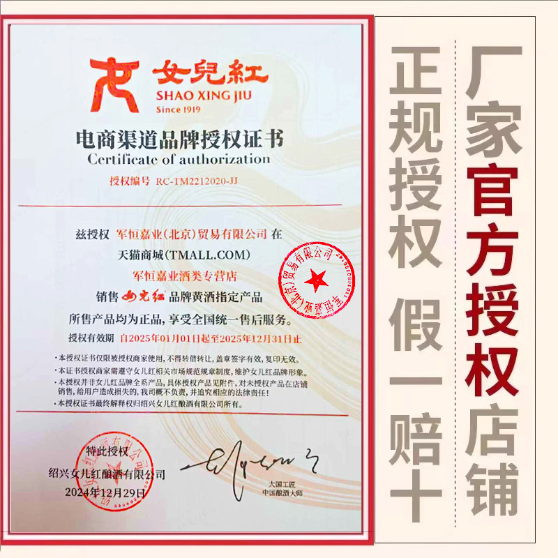 店铺掌柜:军恒嘉业酒类专营店
