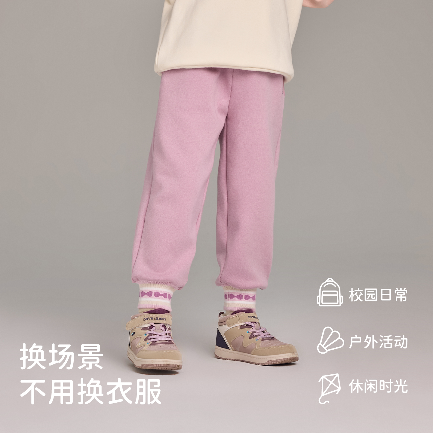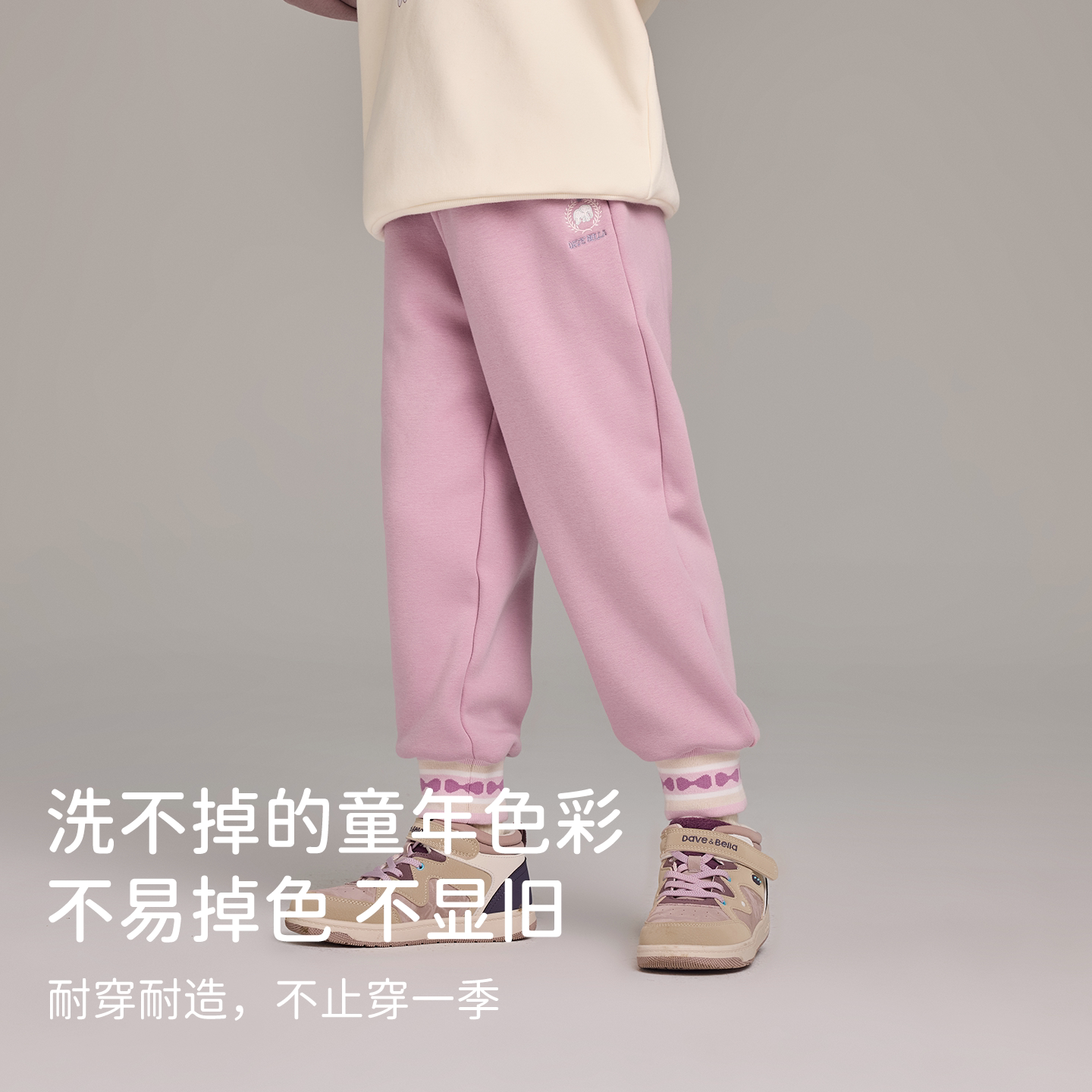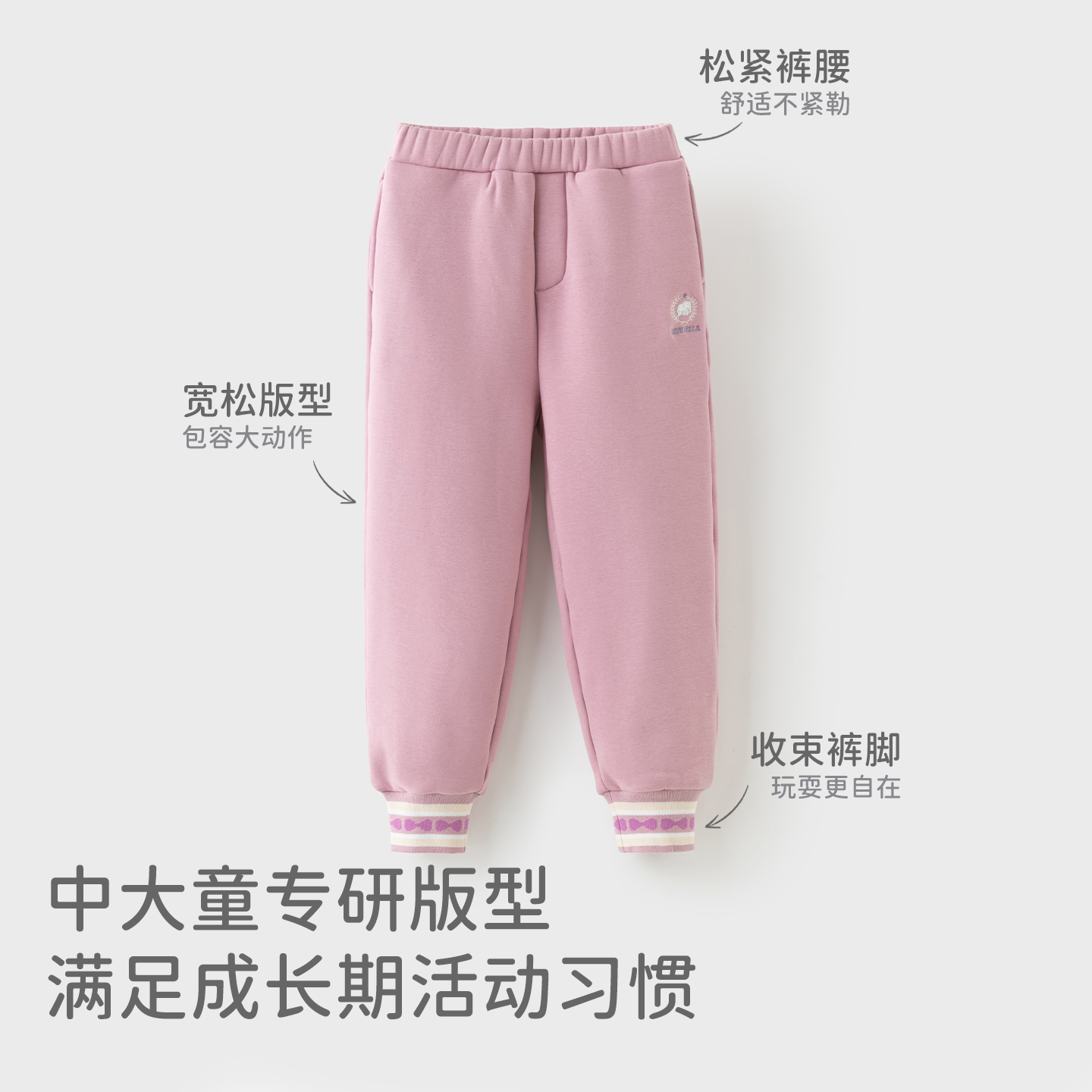 运动裤 戴维贝拉儿童裤 男童中大童冬装 不倒绒束脚裤 子2026女童新款