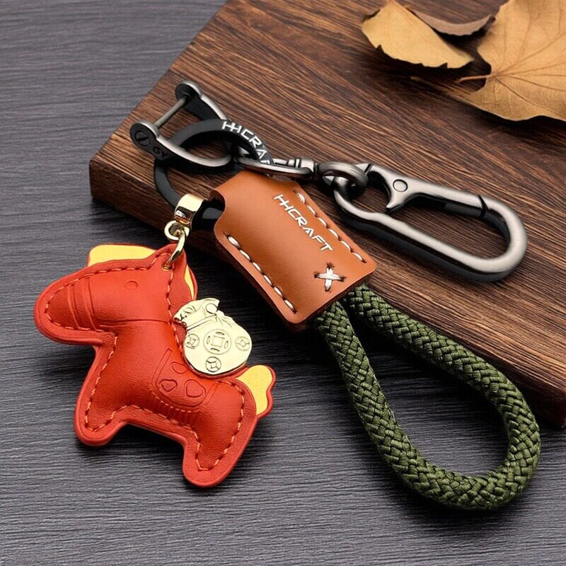 2026马上有钱皮革钥匙扣挂绳书包挂件公仔车钥匙链挂饰马年小礼品