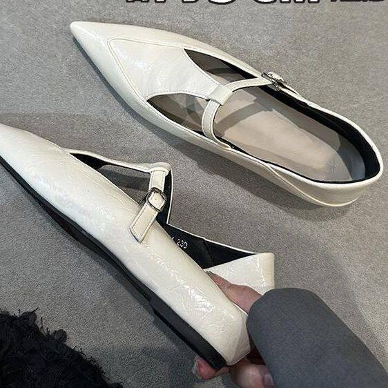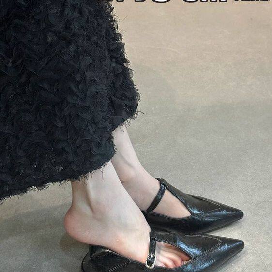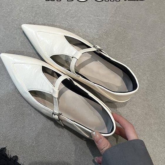 T带镂空气质奶奶鞋 复古尖头玛丽珍小皮鞋 女2026年法式 内增高单鞋