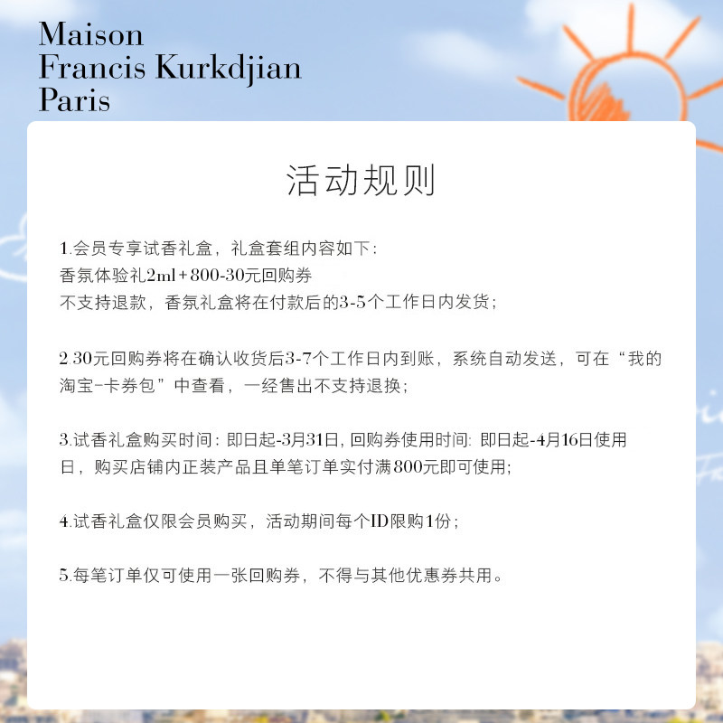 店铺掌柜:MaisonFrancisKurkdjian梵诗柯香官方旗舰店