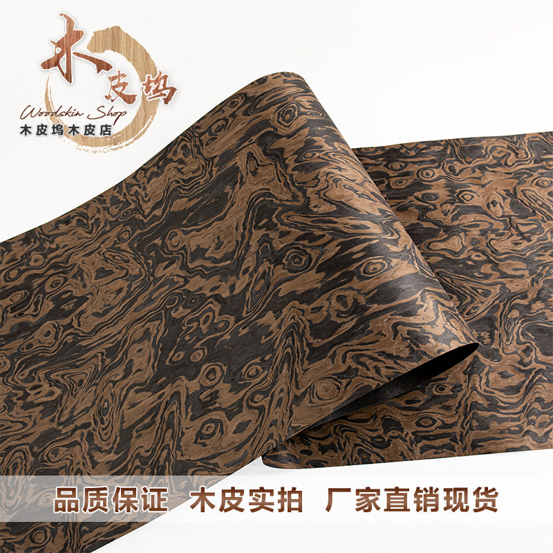 兔宝宝科技黑胡桃图腾乱纹实木皮中古风高定木皮手工贴面饰面板皮