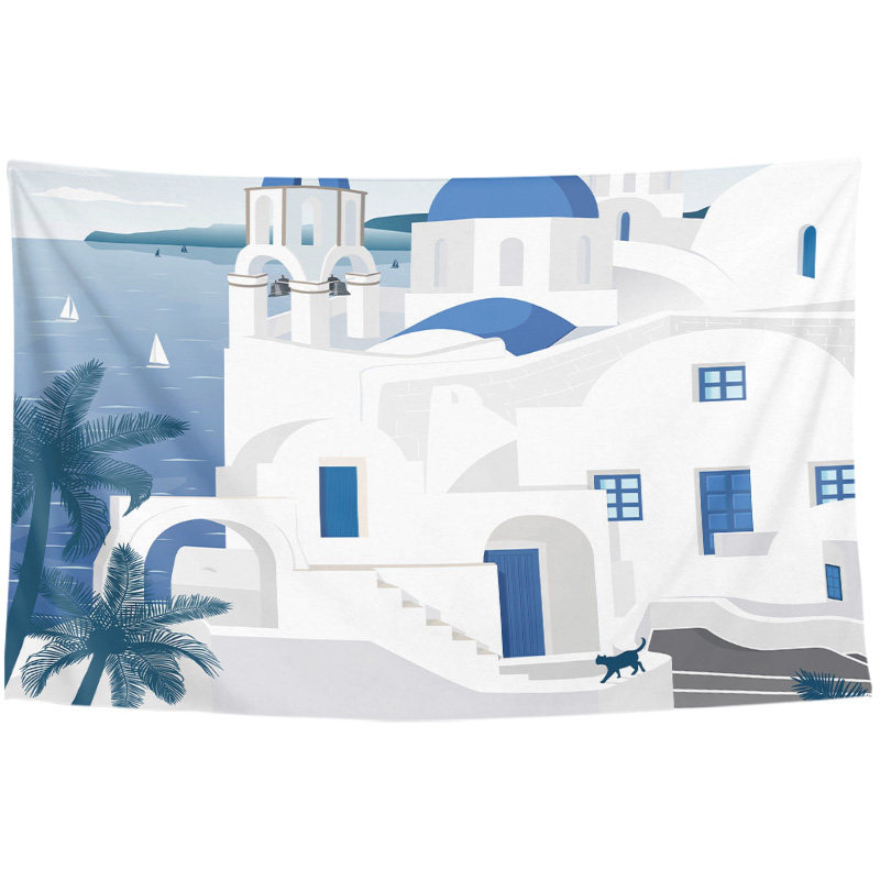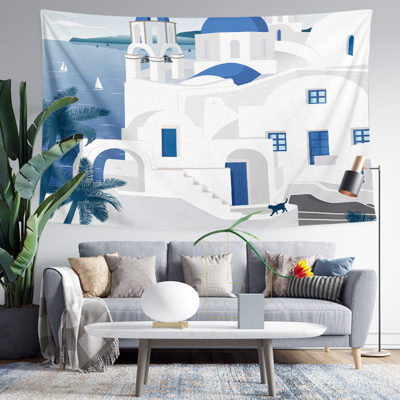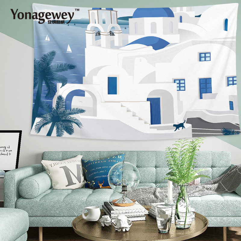 意大利地中海现代性冷淡风格 饰海边别墅海报背景布挂布墙布挂毯 装