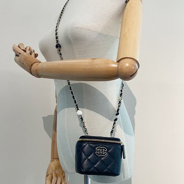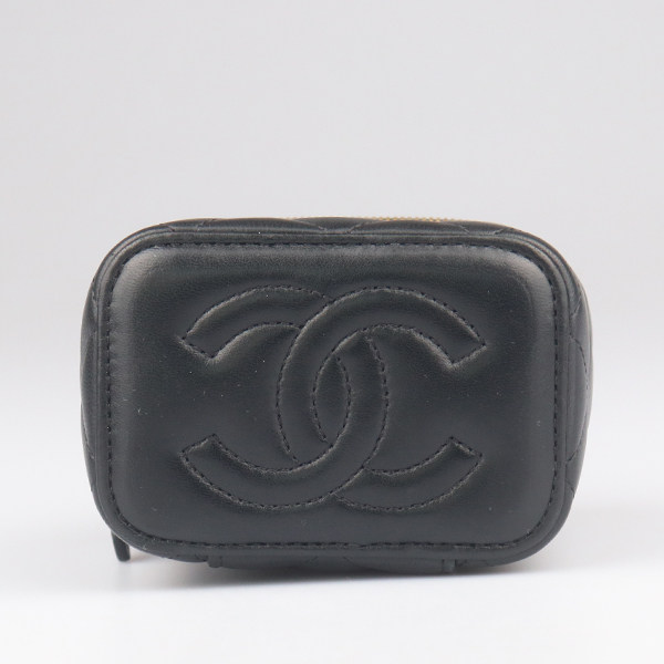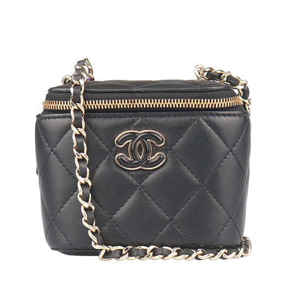 9新CHANEL香奈儿爱心链条迷你化妆盒黑色羊皮斜挎二手奢侈品包包