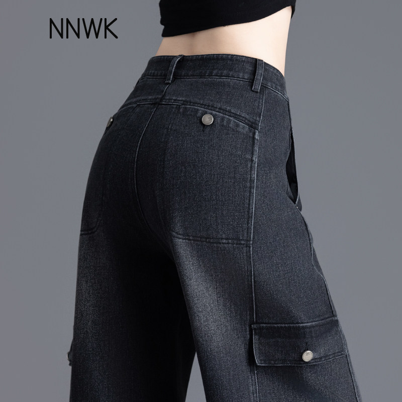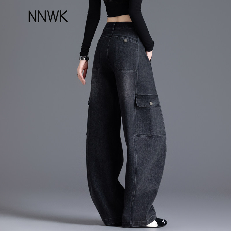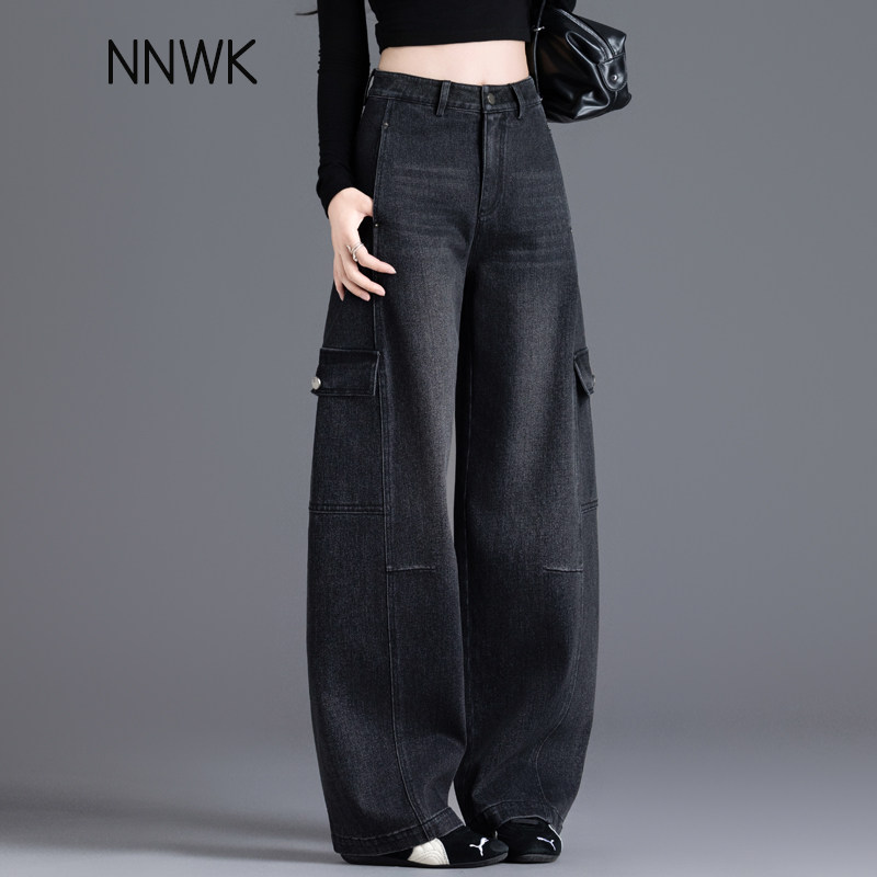 黑色工装 小个子高腰多口袋阔腿弯刀裤 牛仔裤 春秋季 女2026新款 美式