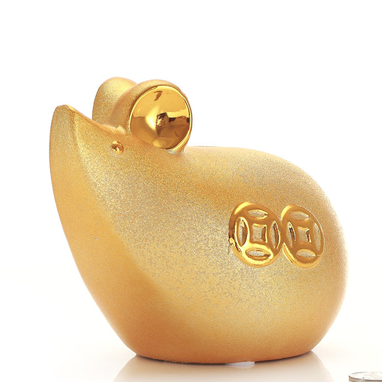 2020鼠年摆件金色储蓄罐金老鼠存钱罐本命年饰品吉祥物创意小礼品