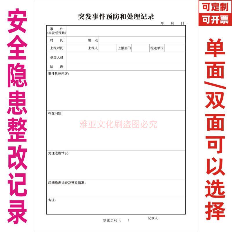 突发事件预防和处理记录安监检查制度企业标准化资料管理台账定制